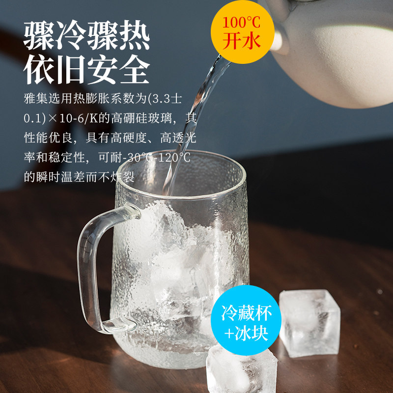 雅集茶具锤纹茶屿杯加厚高硼硅玻璃杯耐热带盖带把手过滤泡茶杯