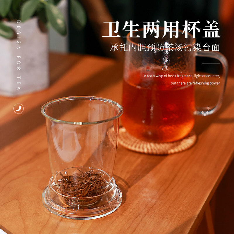 茶水分离泡茶杯男玻璃杯高颜值水杯女士防烫大容量学生便携杯子