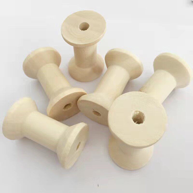 10个/包47mm实木线轴对于螺纹线材自然色打磨木手工diy缠绕线木轴