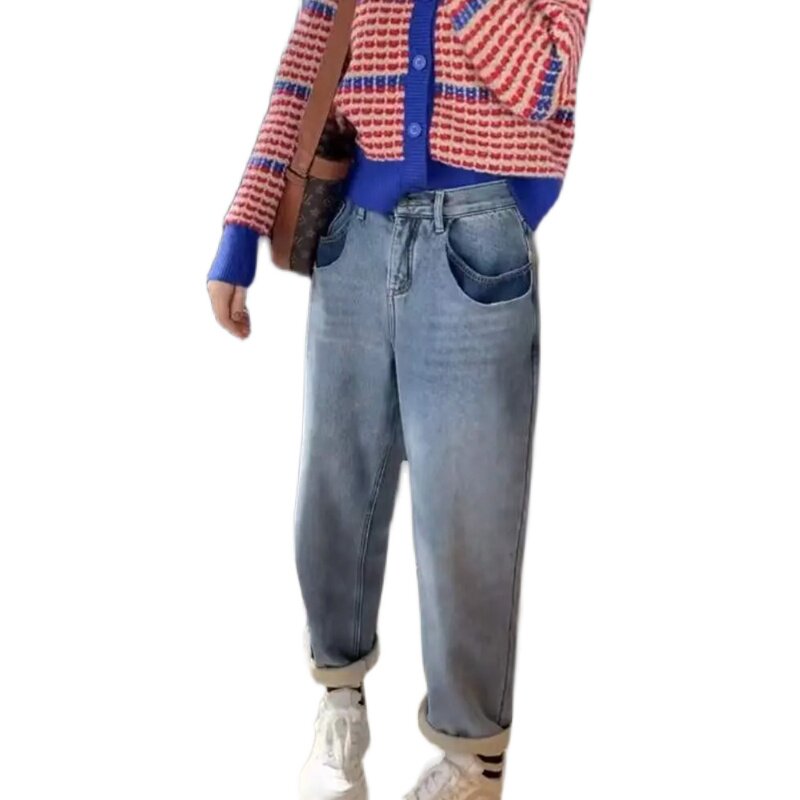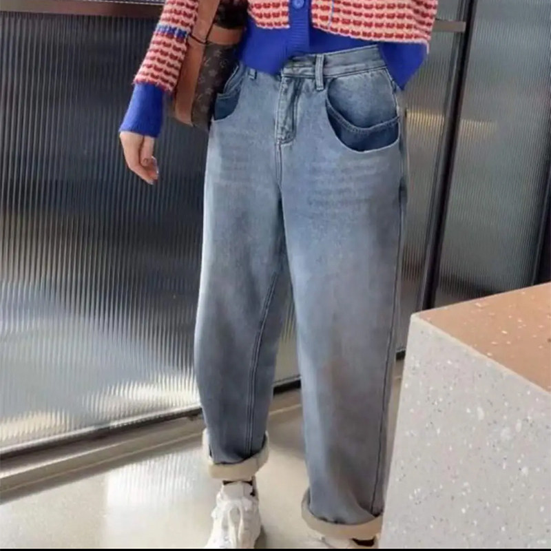 大码202秋季新款宽松显瘦老爹裤女胖妹妹mm高腰直筒牛仔裤阔腿裤