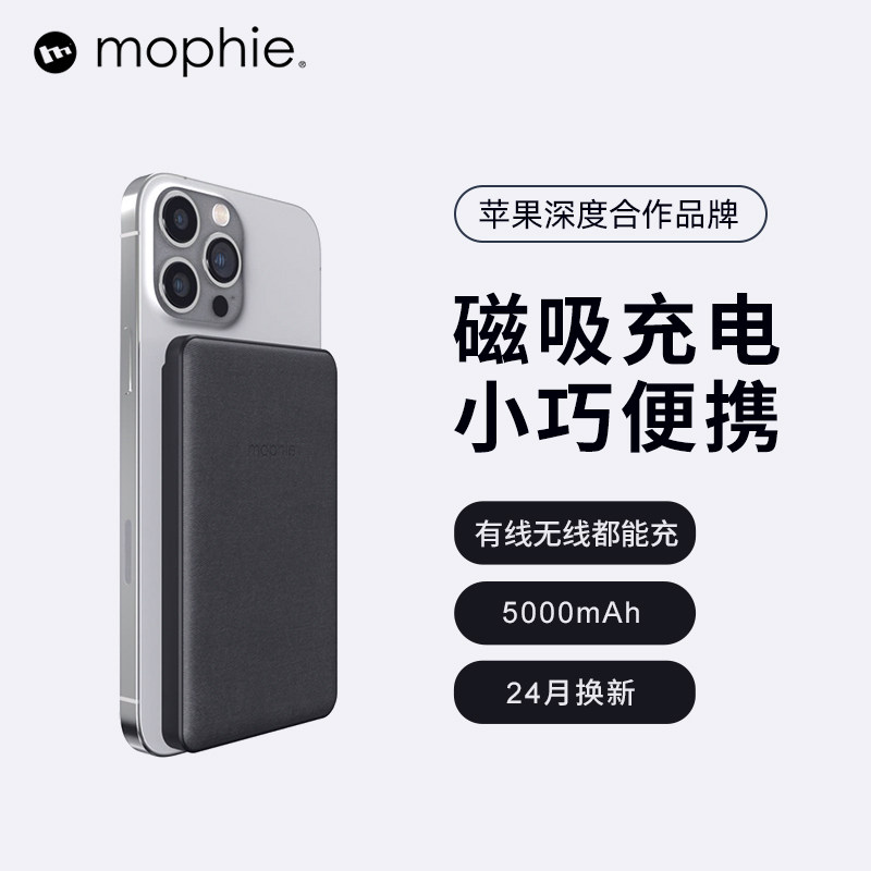 mophie摩尔菲磁吸无线充电宝适用于苹果16背夹电池iPhone15pro14max移动电源5000毫安MagSafe小巧便携