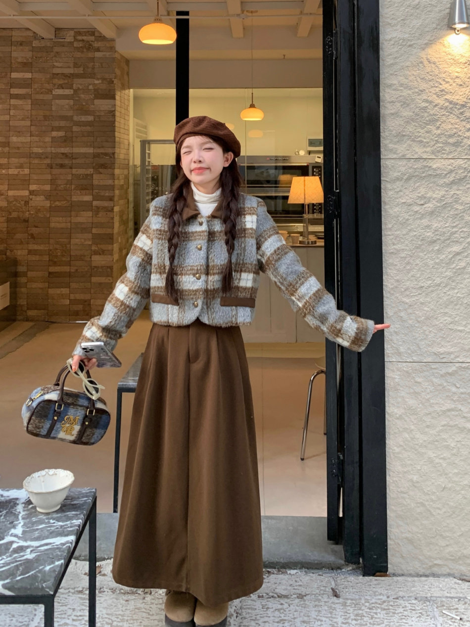 淘宝Dora朵拉精选女装,实拍实价~ 秋冬款美拉德风套装撞色两件套加厚秋冬复古半身裙女