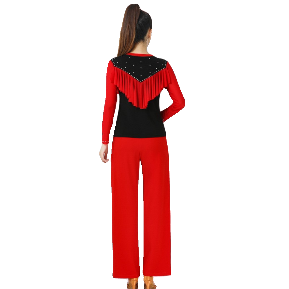 吉特巴舞蹈上衣新款长袖广场舞服装女三步踩时尚荷叶边镶钻舞蹈服