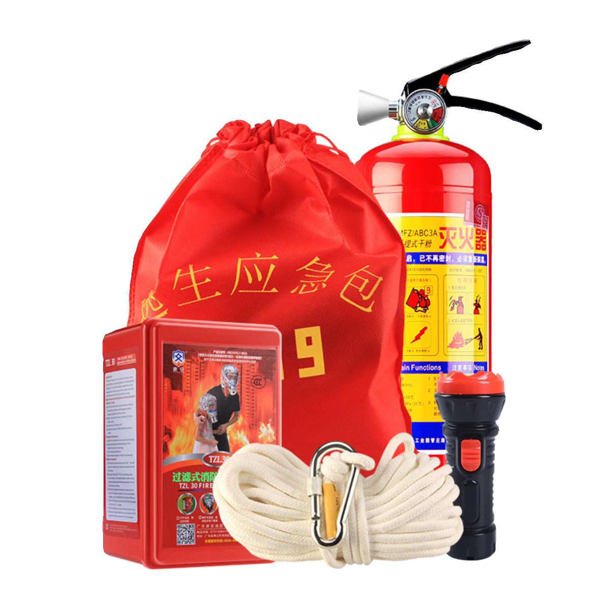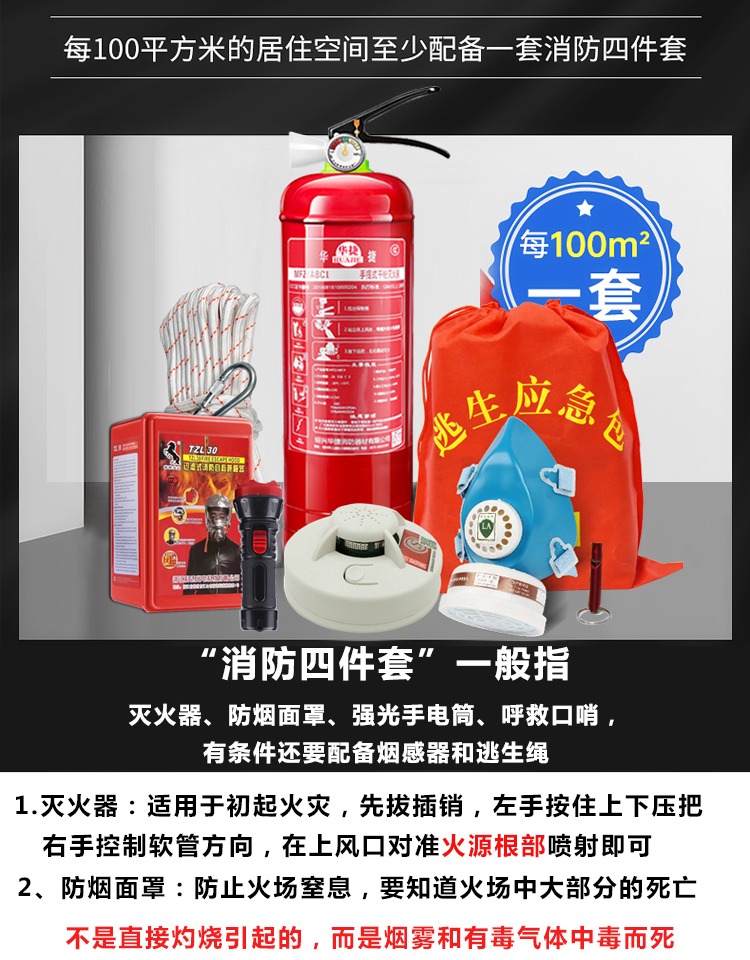 淘宝视贸消防器材店,消防四件套出租房套装器材五件套灭火器应急包酒店安全家用逃生包