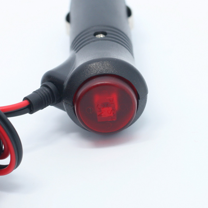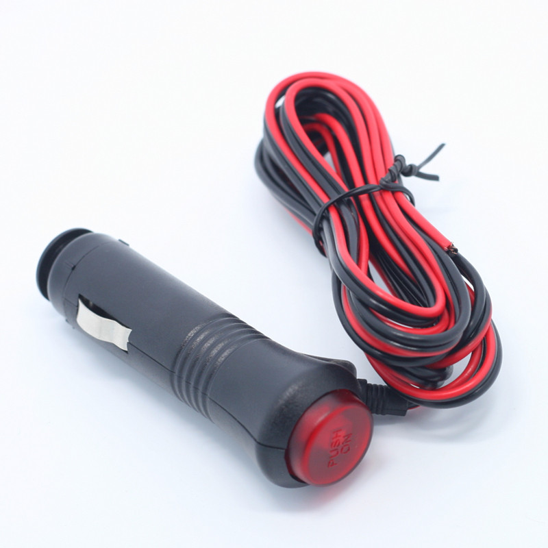 汽车车用点烟器2米电源线带开关指示灯点烟器插头电源延长线12V