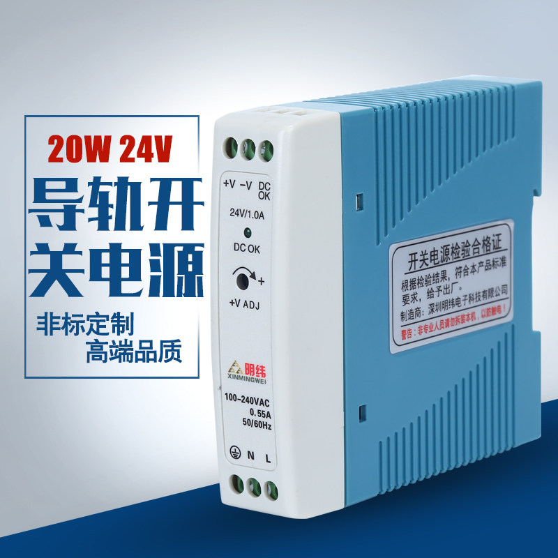 明纬导轨式模块MDR-20-24v小体积超薄卡轨开关电源12V1.6A变压器W