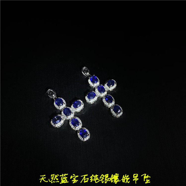 天然蓝宝石纯银镶嵌十字架款吊坠 女款彩宝饰品吊坠饰品礼物