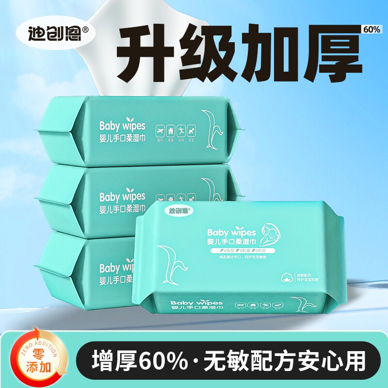 婴儿手口柔湿巾宝宝儿童专用大包装湿纸巾家用可擦脸6941