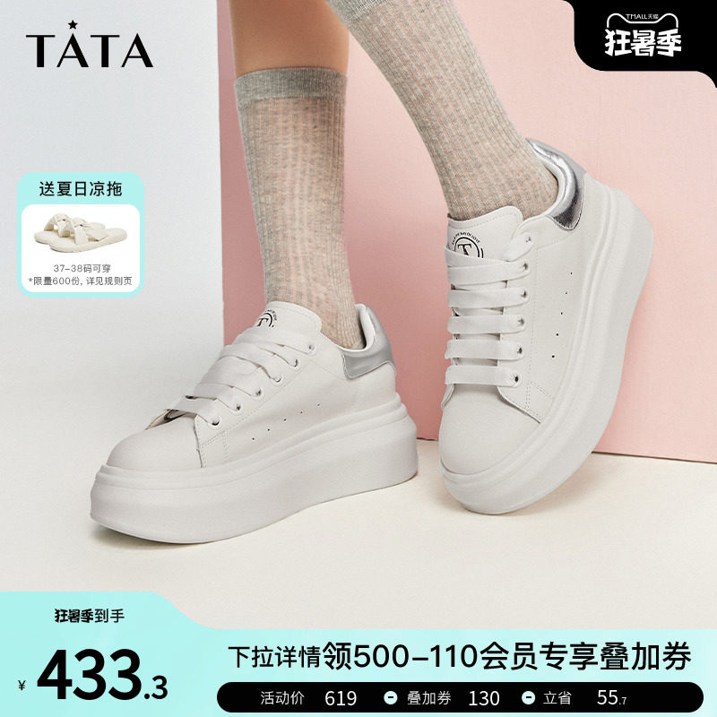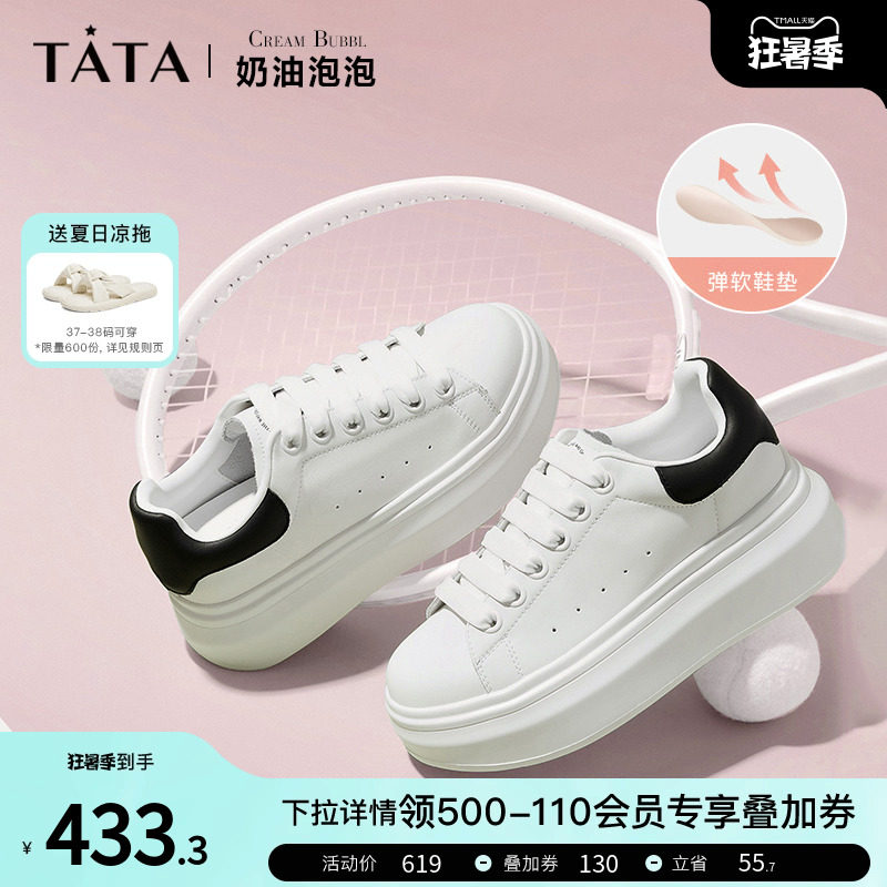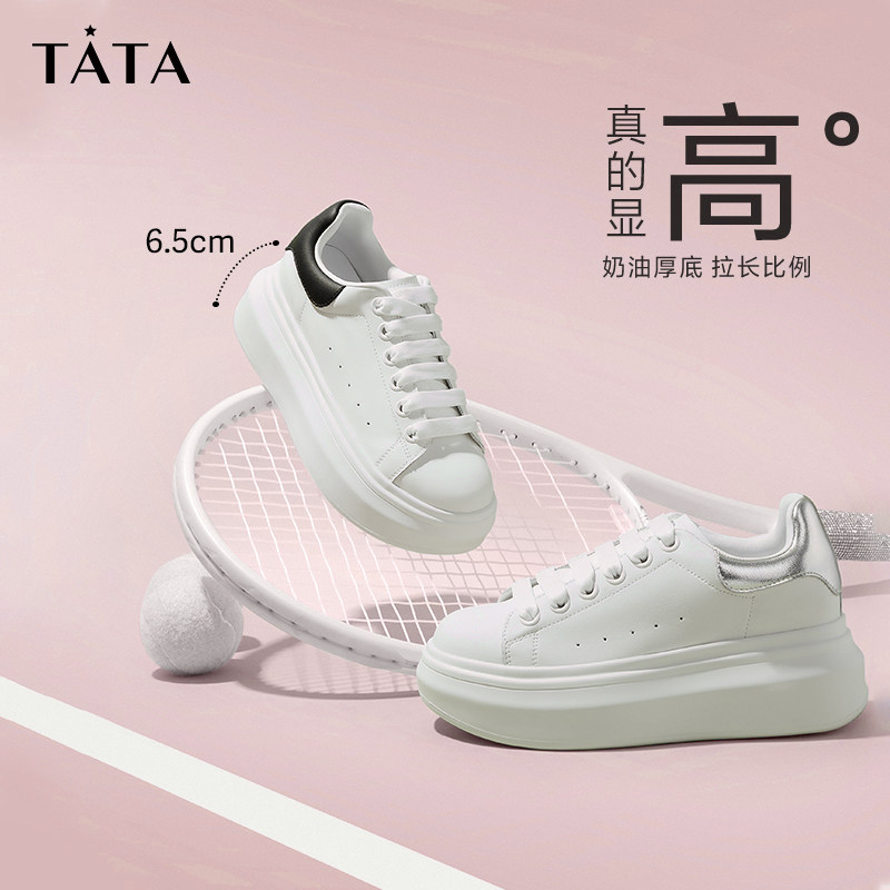 天猫他她Tata官方旗舰店,Tata他她奶油泡泡厚底小白鞋女增高松糕鞋板鞋女2024秋新WU501CM4,板鞋女休闲小白鞋
