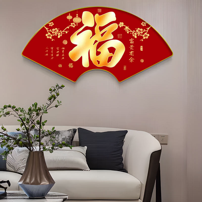 福字扇形装饰画客厅沙发背景墙壁画入户玄关餐厅寓意好吉祥挂画