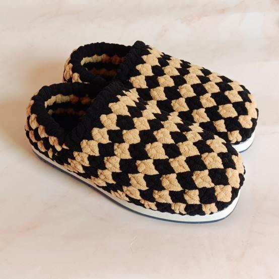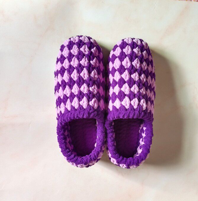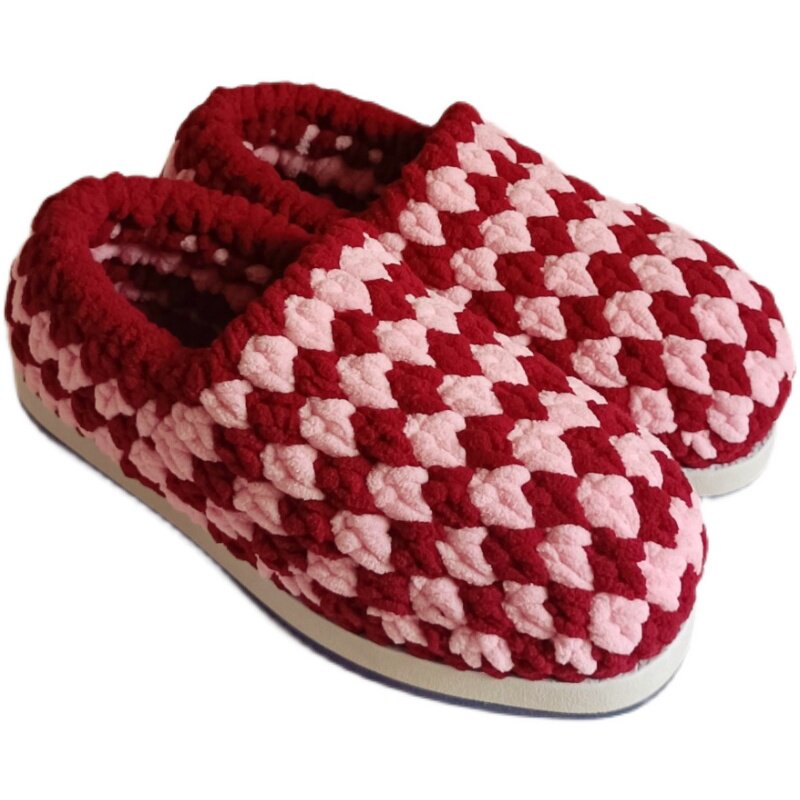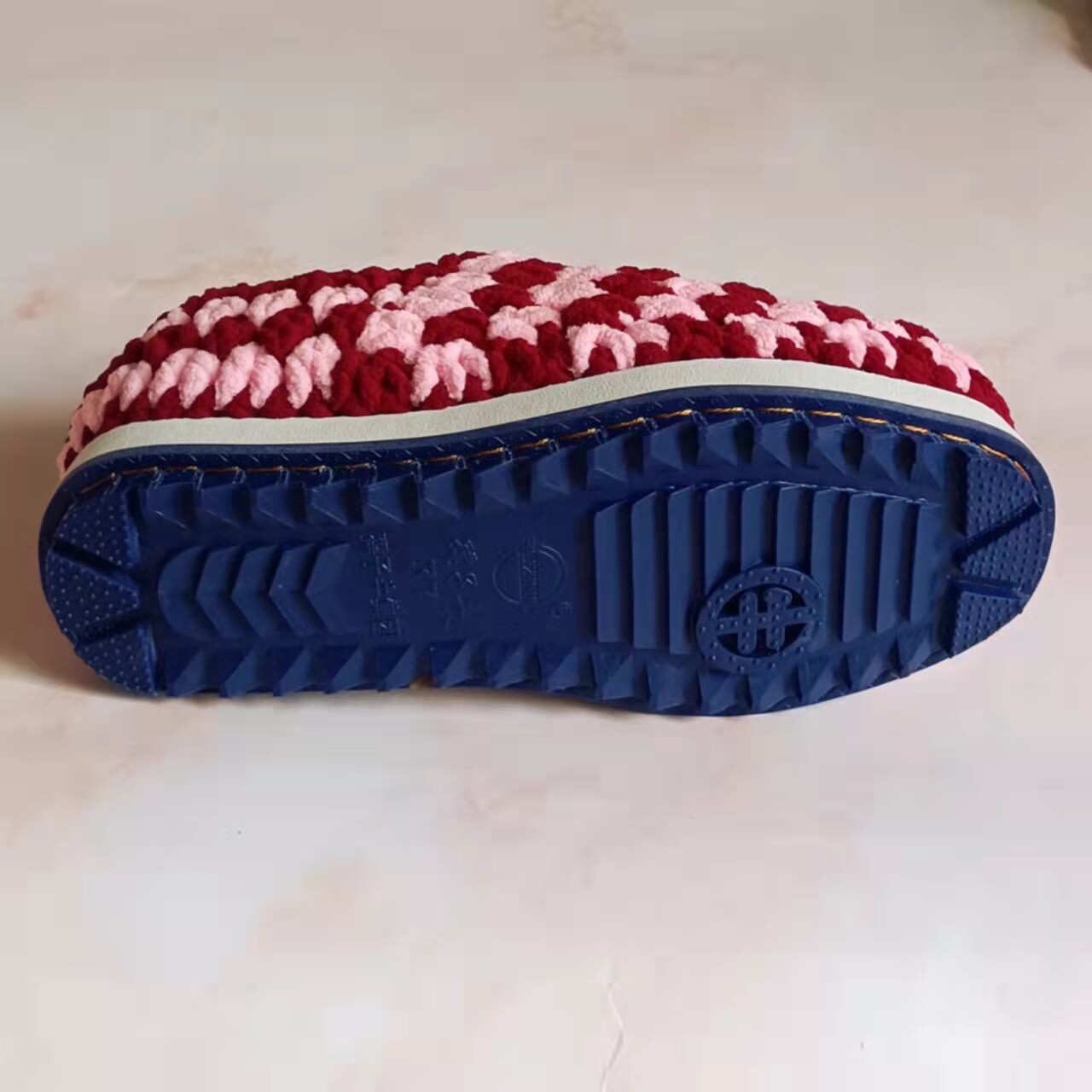 淘宝小苏手工房,居家情侣包头加厚冬季粗毛线棉拖鞋包跟牛筋底卧室纯手工钩织成品