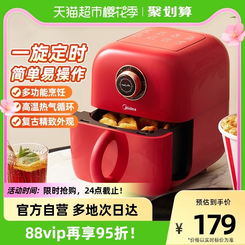 天猫超市,美的空气炸锅家用多功能无油蛋挞,3L大容量 8大菜单 无油健康 易清洗
