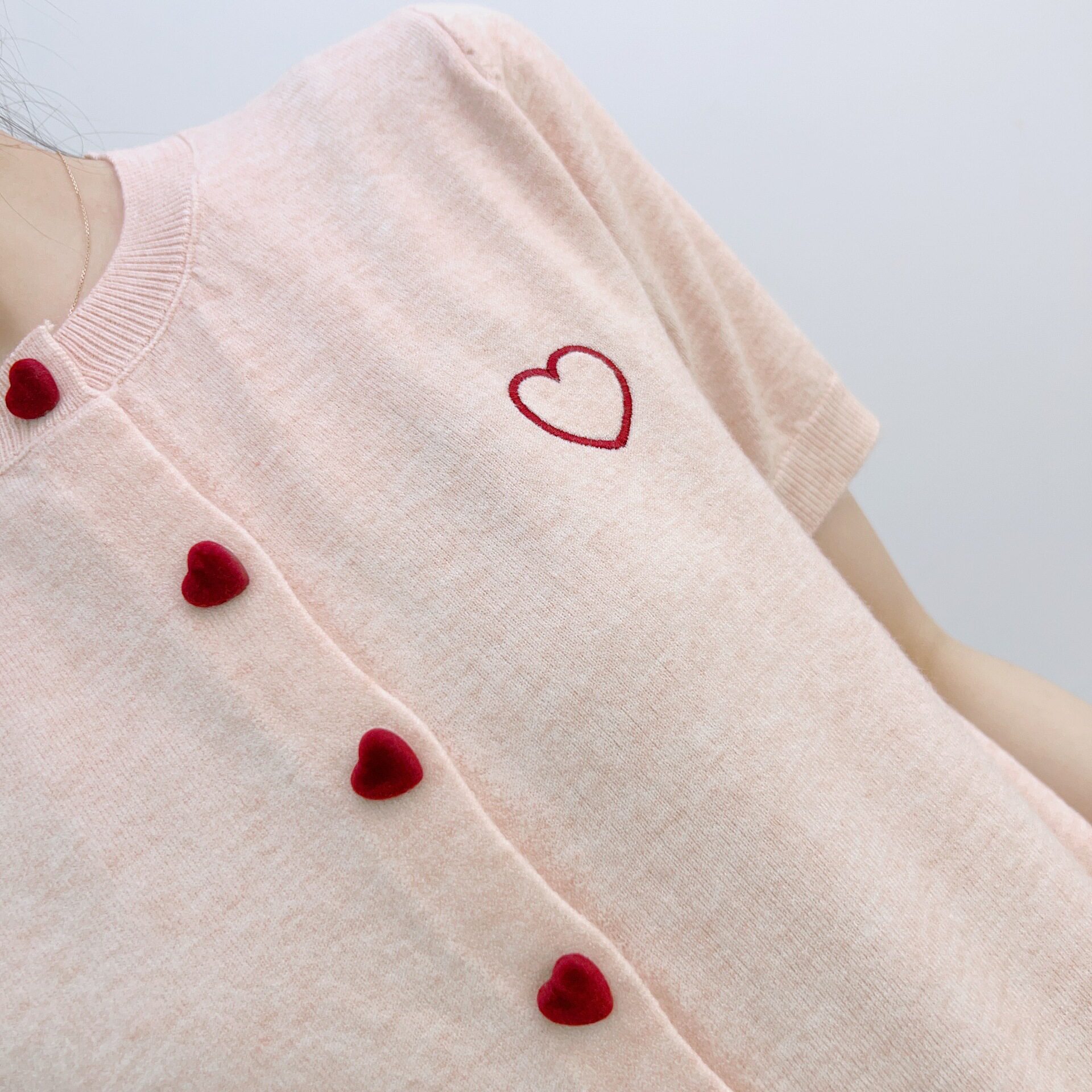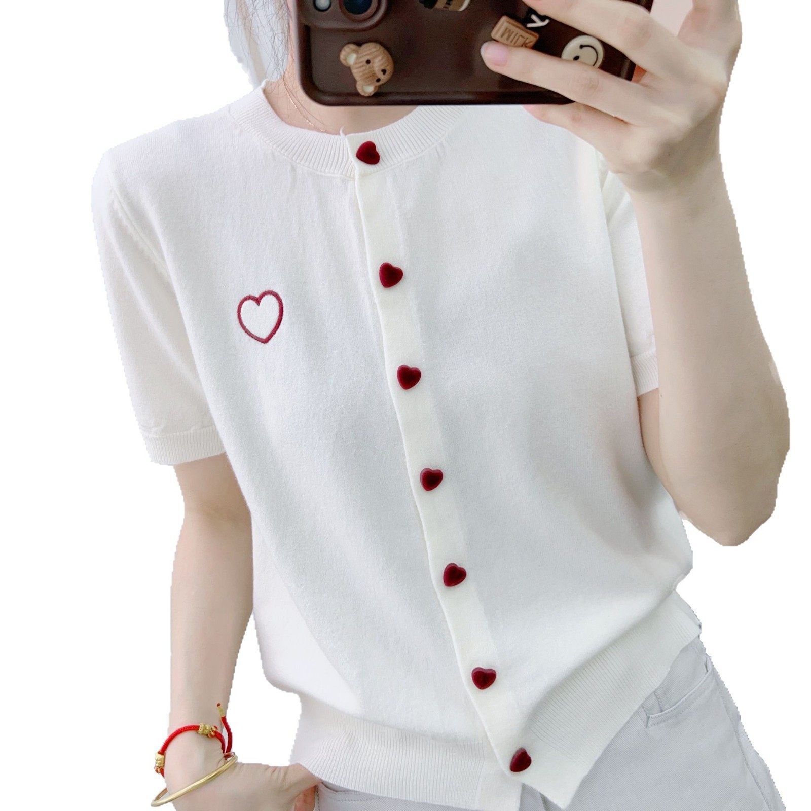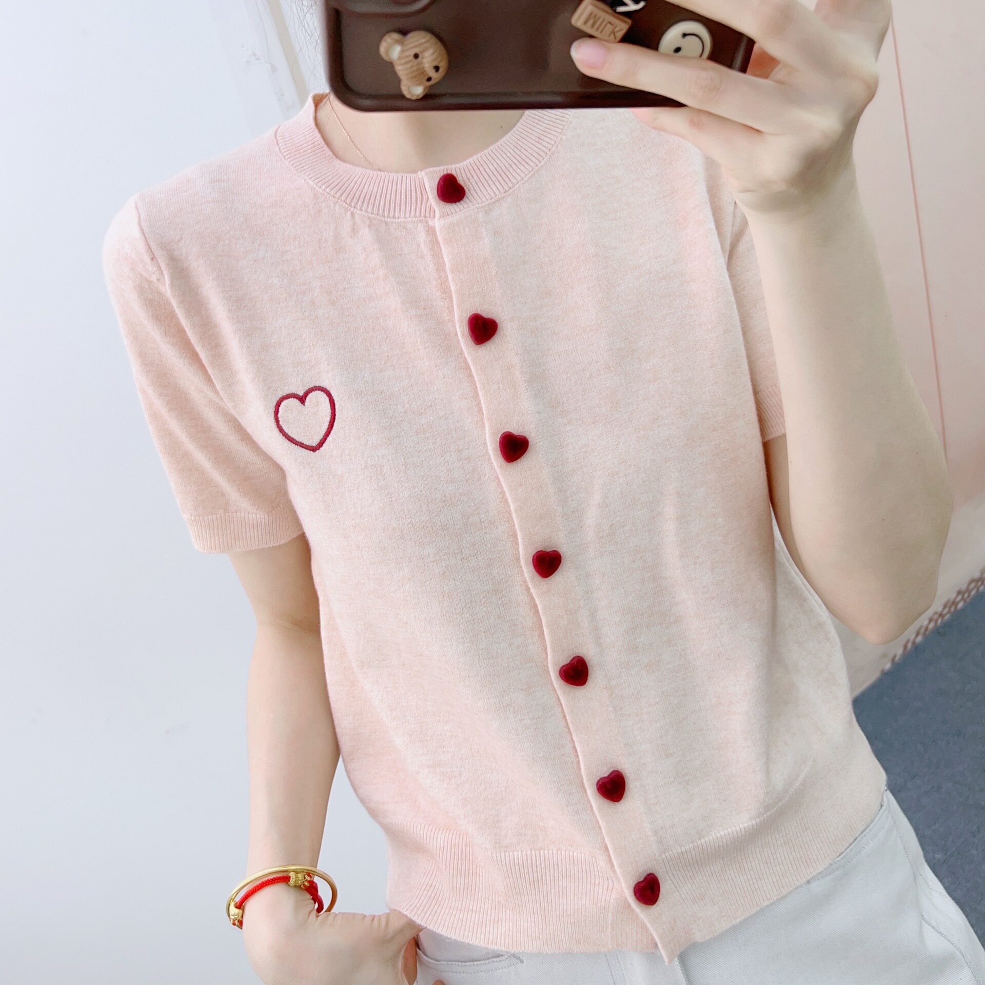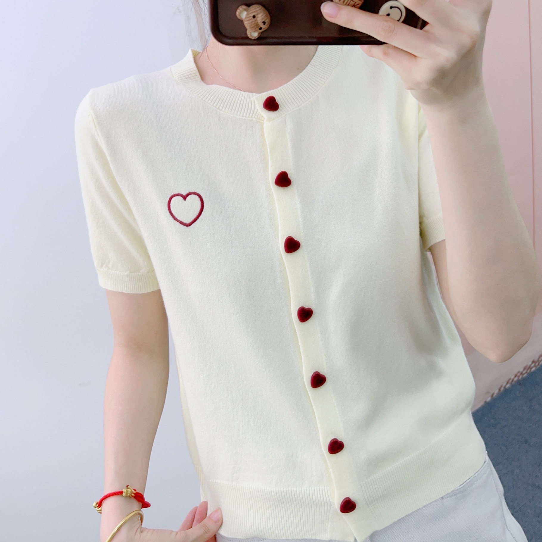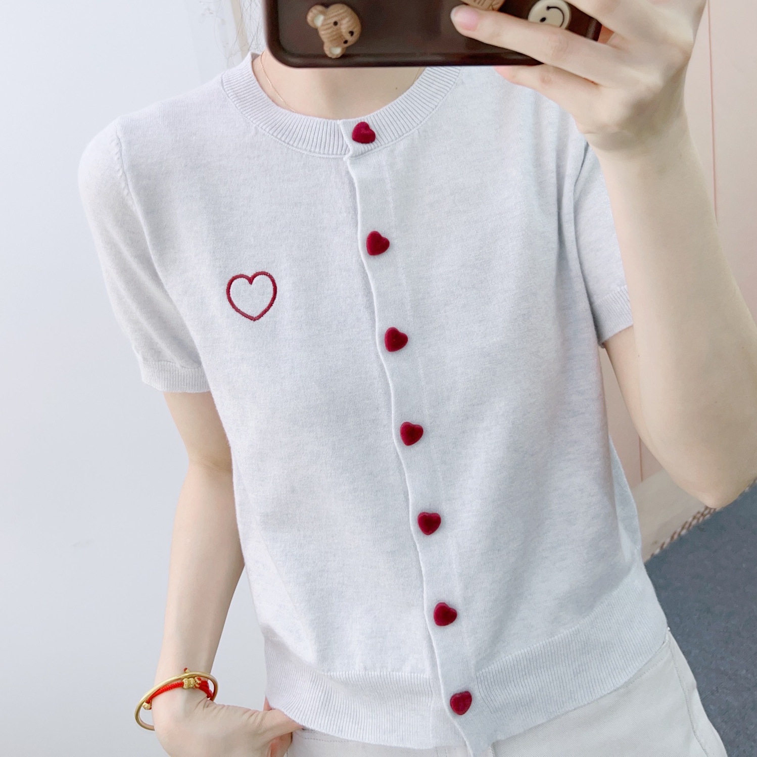 2025年春季新时尚韩版百搭显瘦柔软爱心扣短袖套头针织衫296