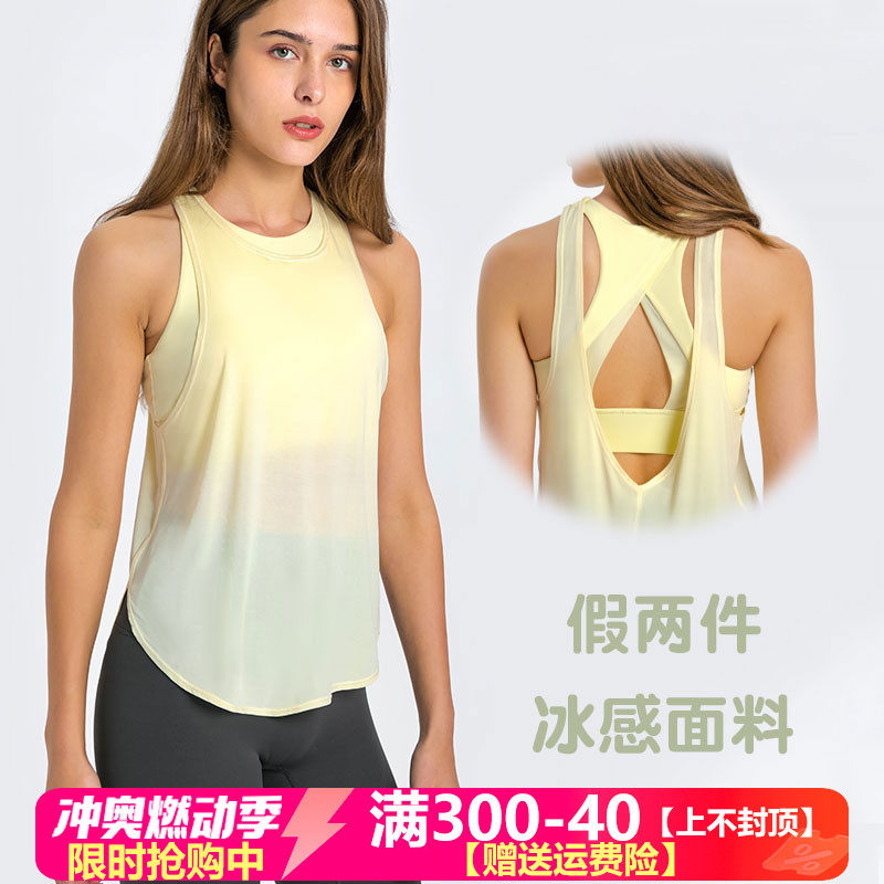 淘宝COCO欧美瑜伽健身馆,假两件美背透气瑜伽服背心