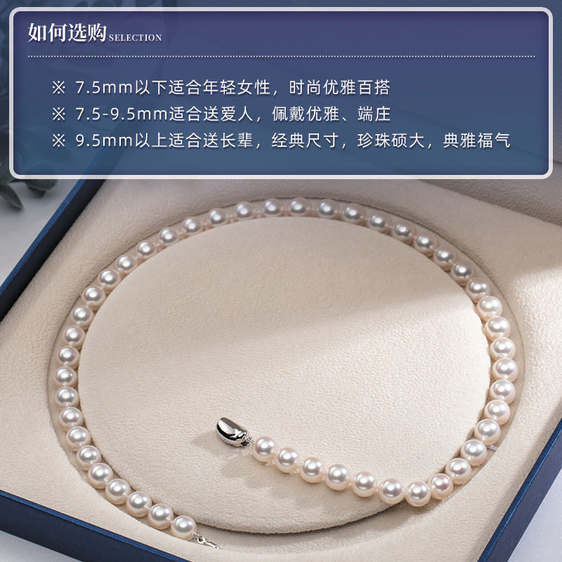 天然淡水正圆强光高品质珍珠项链网红明星同款妈妈母亲节珠链礼物