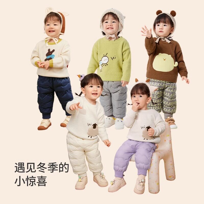 淘宝品牌童装正品折扣商城店,巴拉巴拉婴儿羽绒裤小童宝宝加厚长裤儿童裤子2023冬装新款童装潮