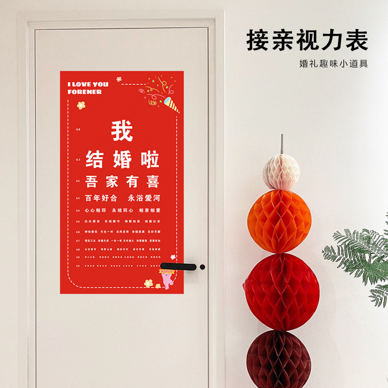 小红书结婚接亲拦堵门接亲视力表创意认喜字…