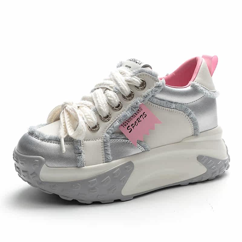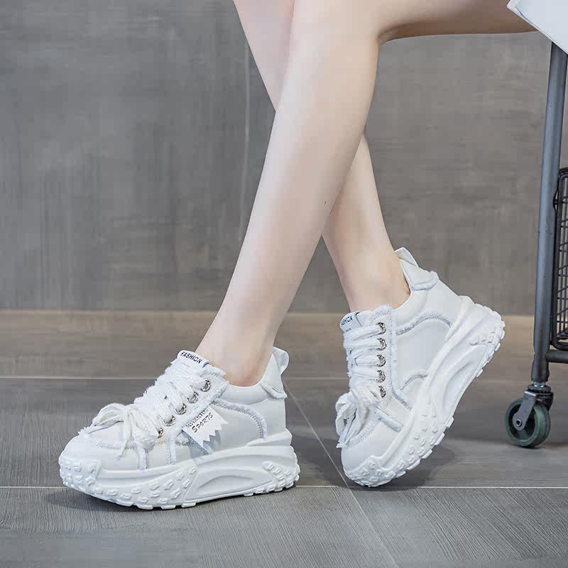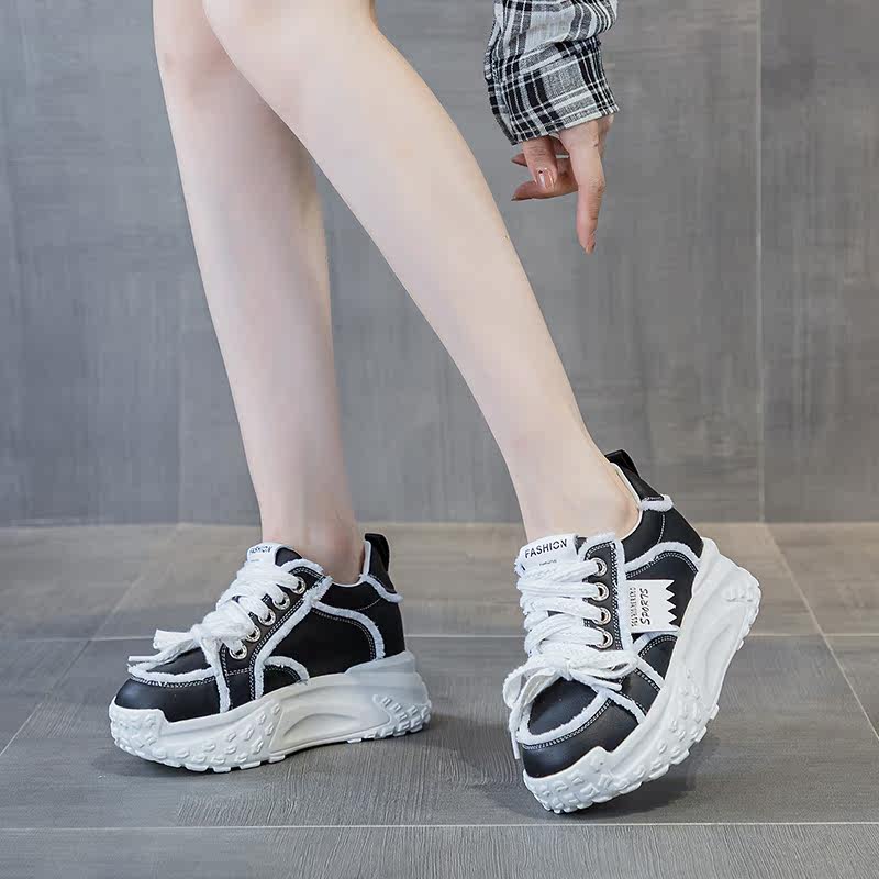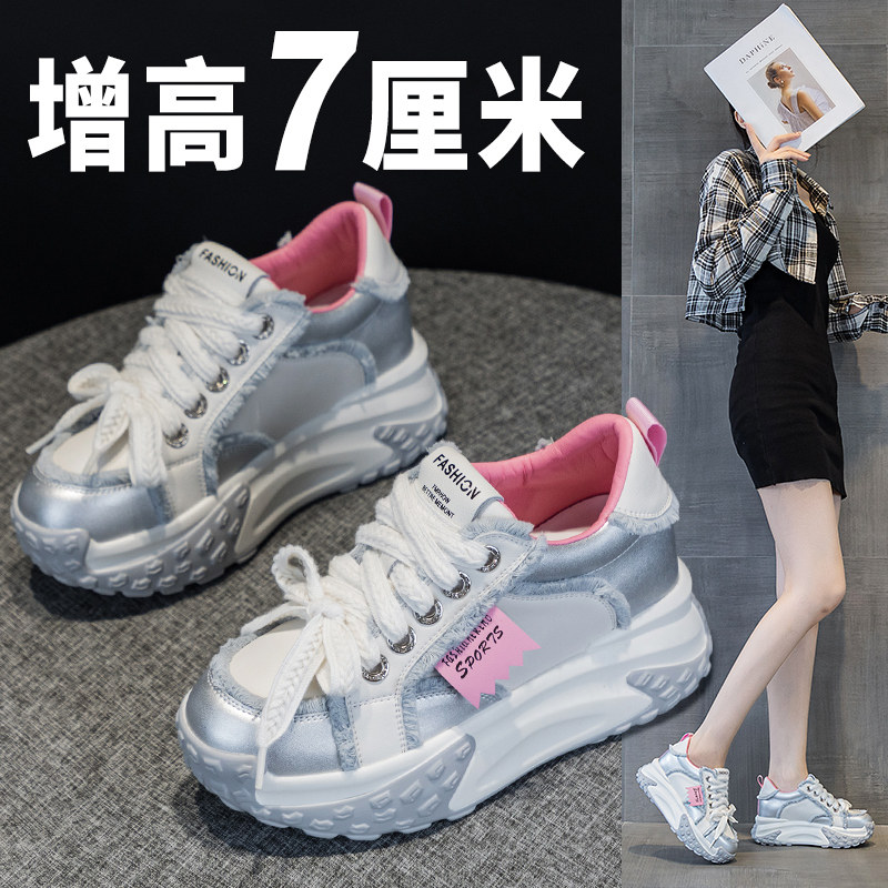 淘宝女王家鞋坊,内增高真皮老爹鞋女2023秋季新款厚底松糕小个子百搭运动休闲女鞋
