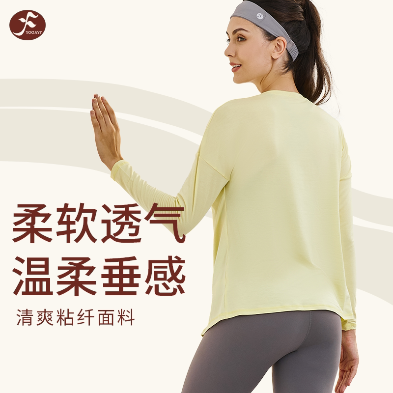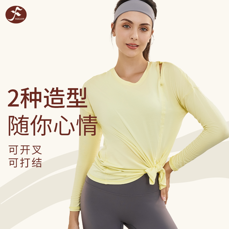一梵瑜伽服镂空运动罩衫侧开叉长袖上衣秋冬…