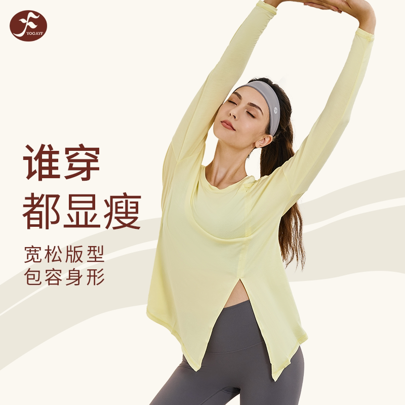 一梵瑜伽服镂空运动罩衫侧开叉长袖上衣秋冬跑步性感宽松t恤外搭
