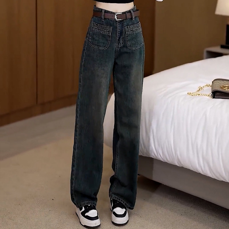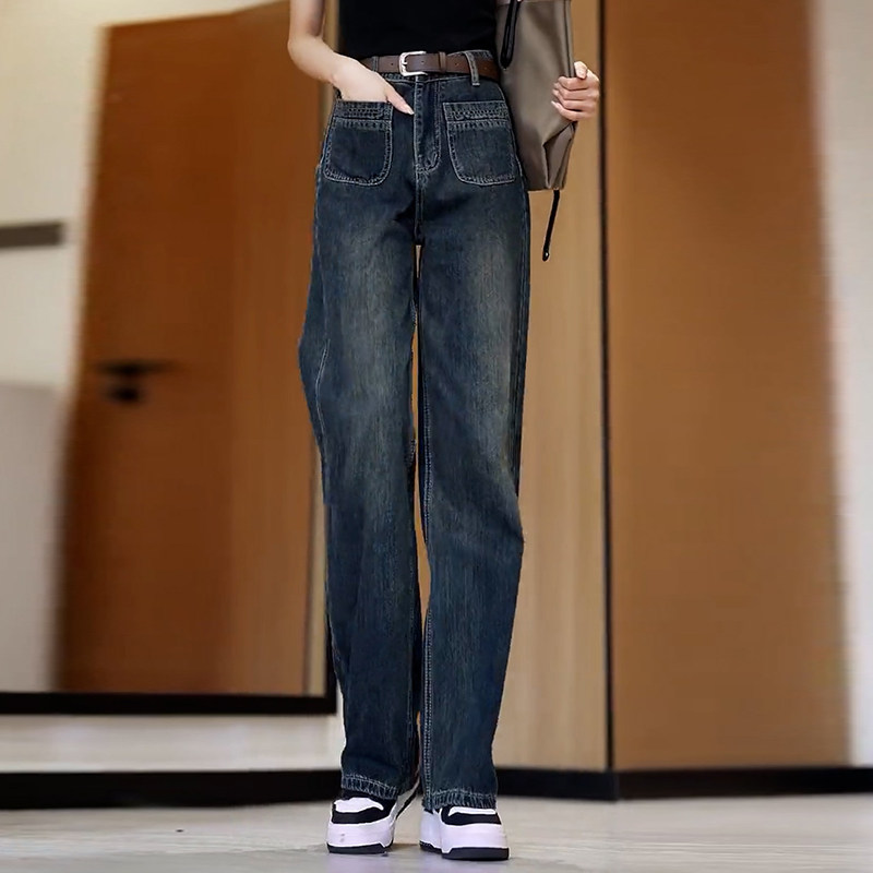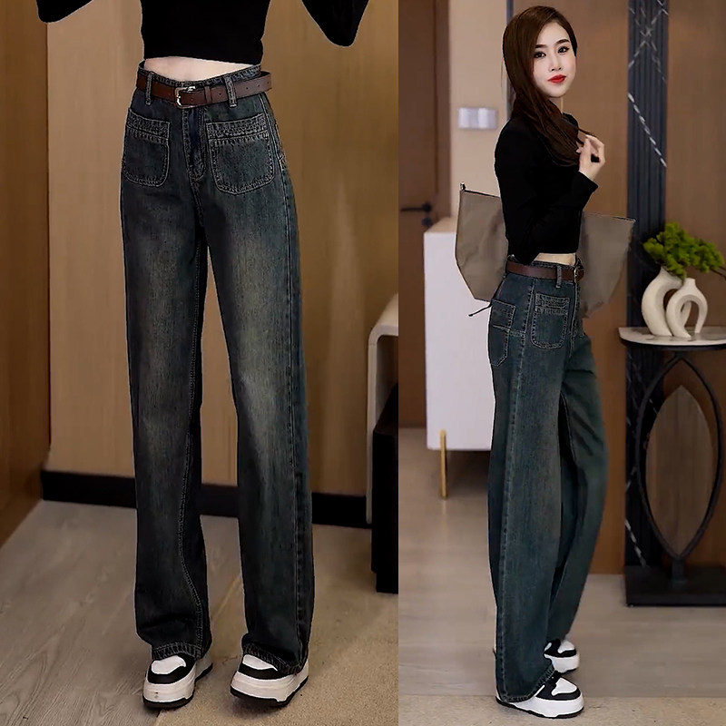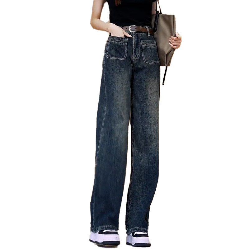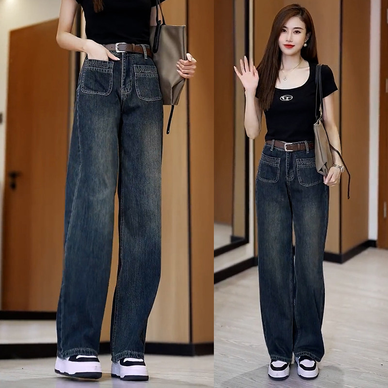 淘宝KY服饰,窄版阔腿牛仔裤女2023新款秋季高腰直筒宽松显瘦胖mm梨型身材裤子