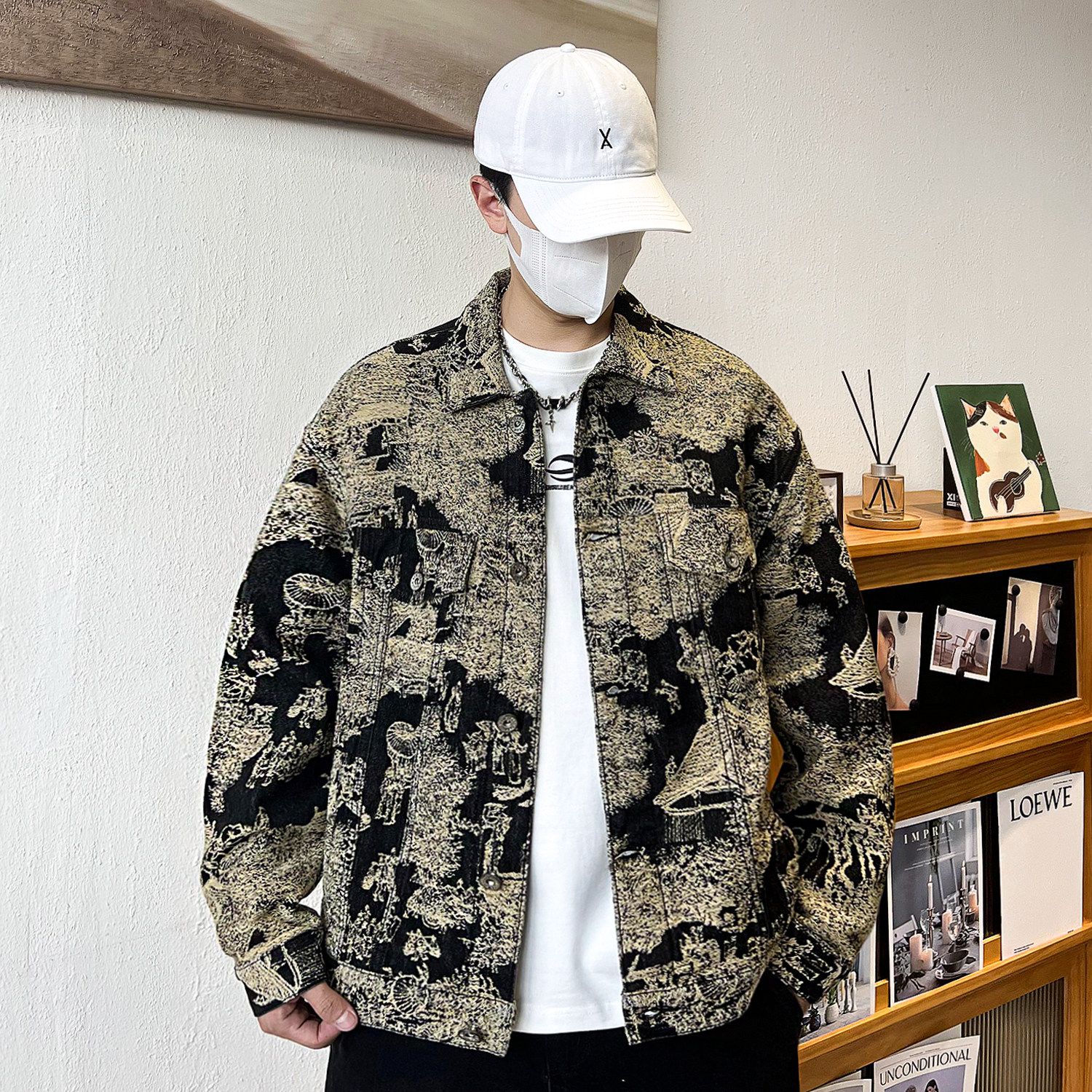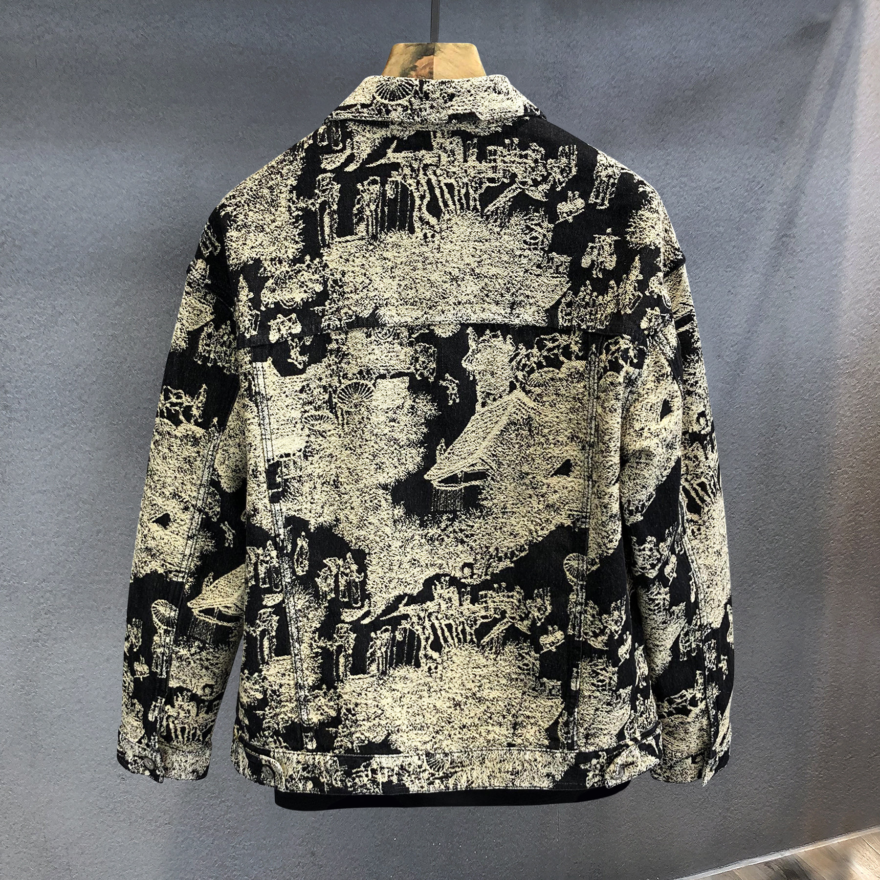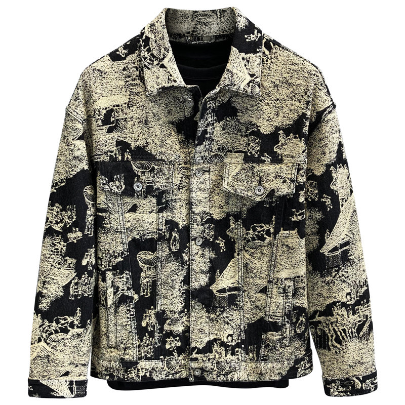 罕见贵气感复古国画艺术提花潮牌牛仔外套男士春秋季新款休闲夹克