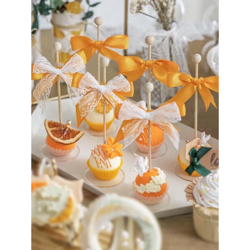 甜品台棒棒糖棍子纸托布丁杯丝带蝴蝶结装饰插件棍纸杯蛋糕装饰品