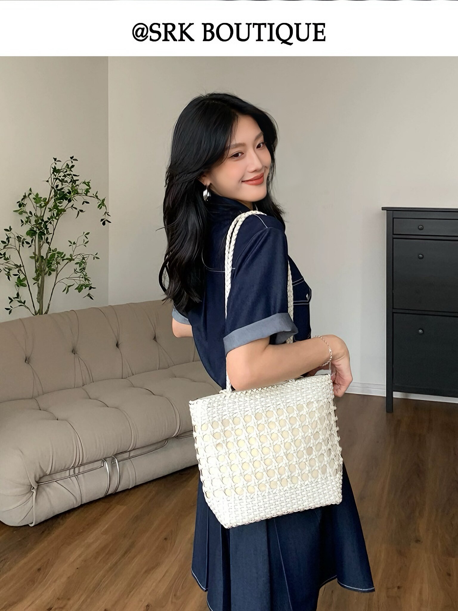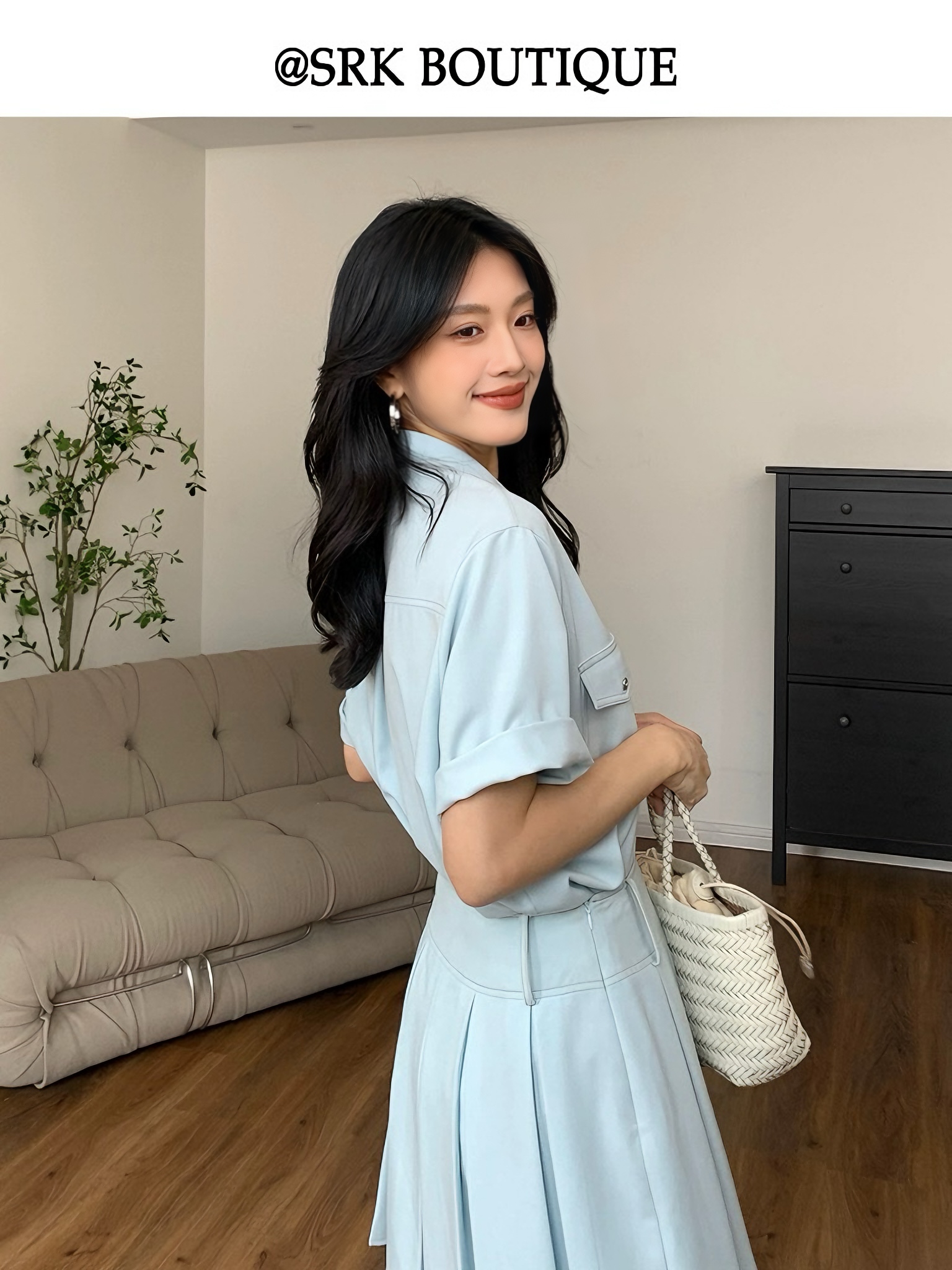 淘宝菁菁是我,短袖夏季显瘦牛仔蓝法式半身裙