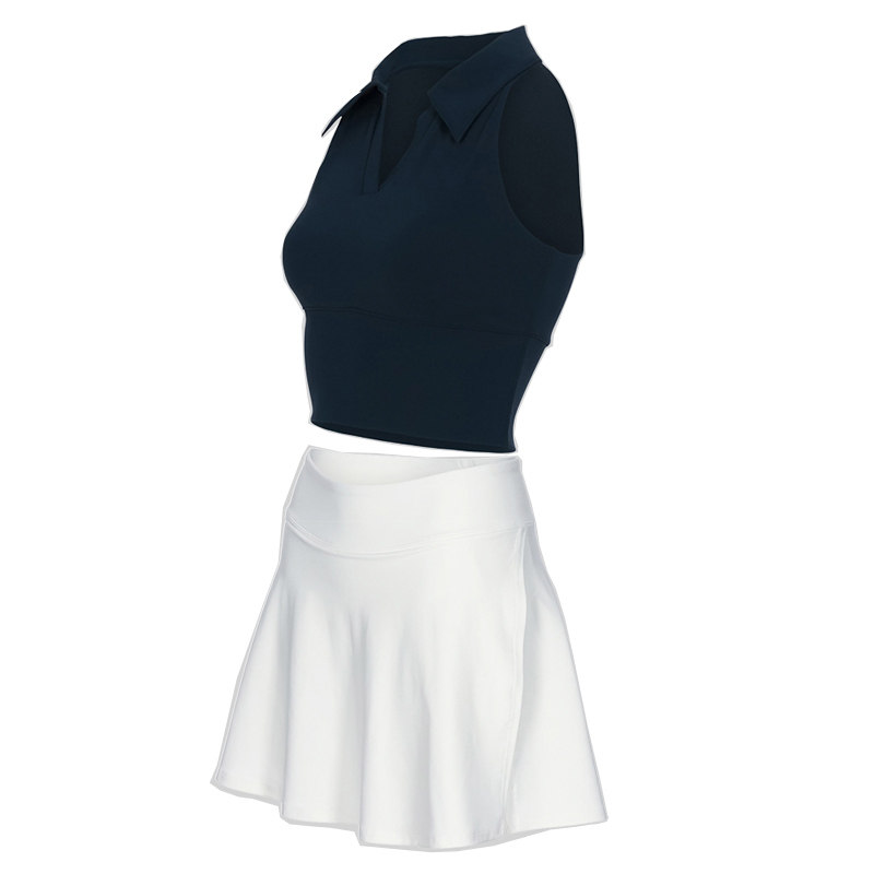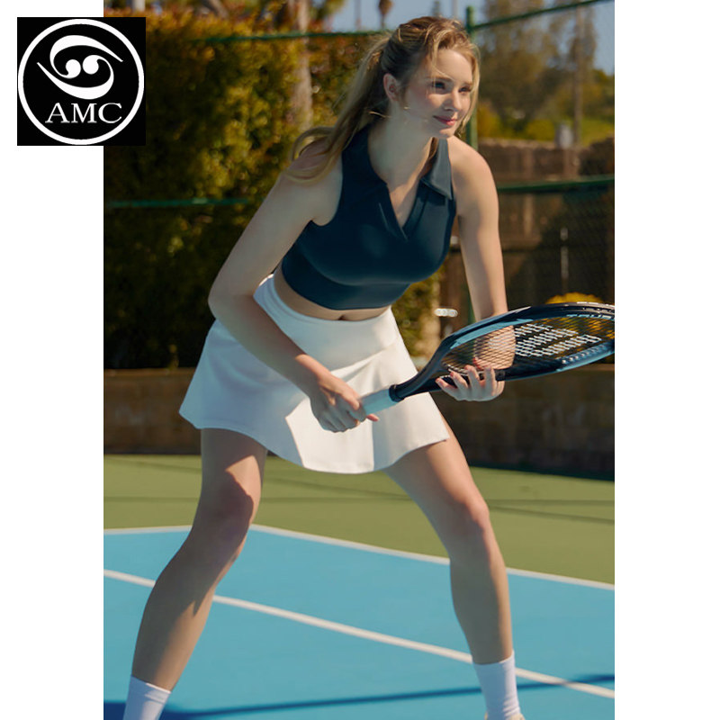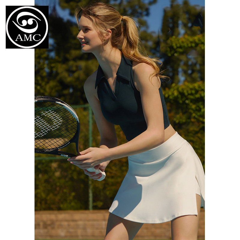 淘宝AMC Sports 艾美川运动,女子运动新款高尔夫网球POLO领背心带胸垫女外穿弹力透气短裙套装