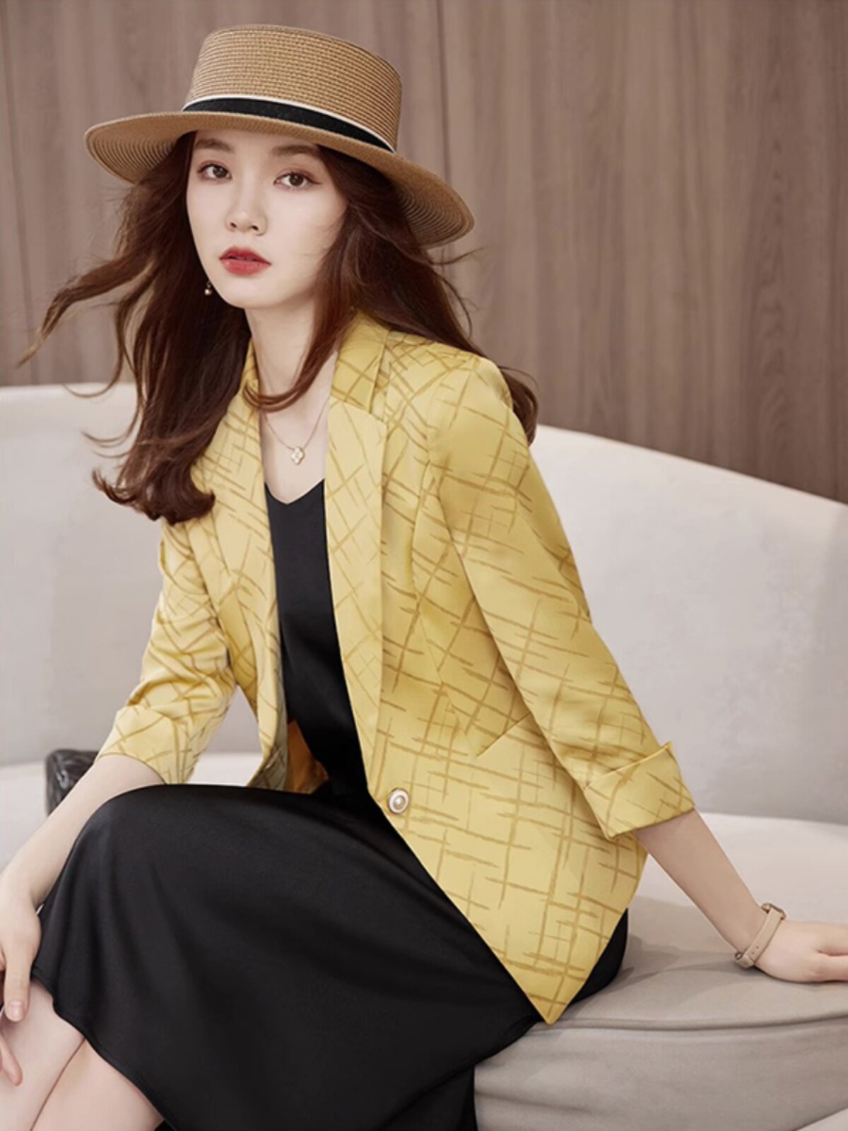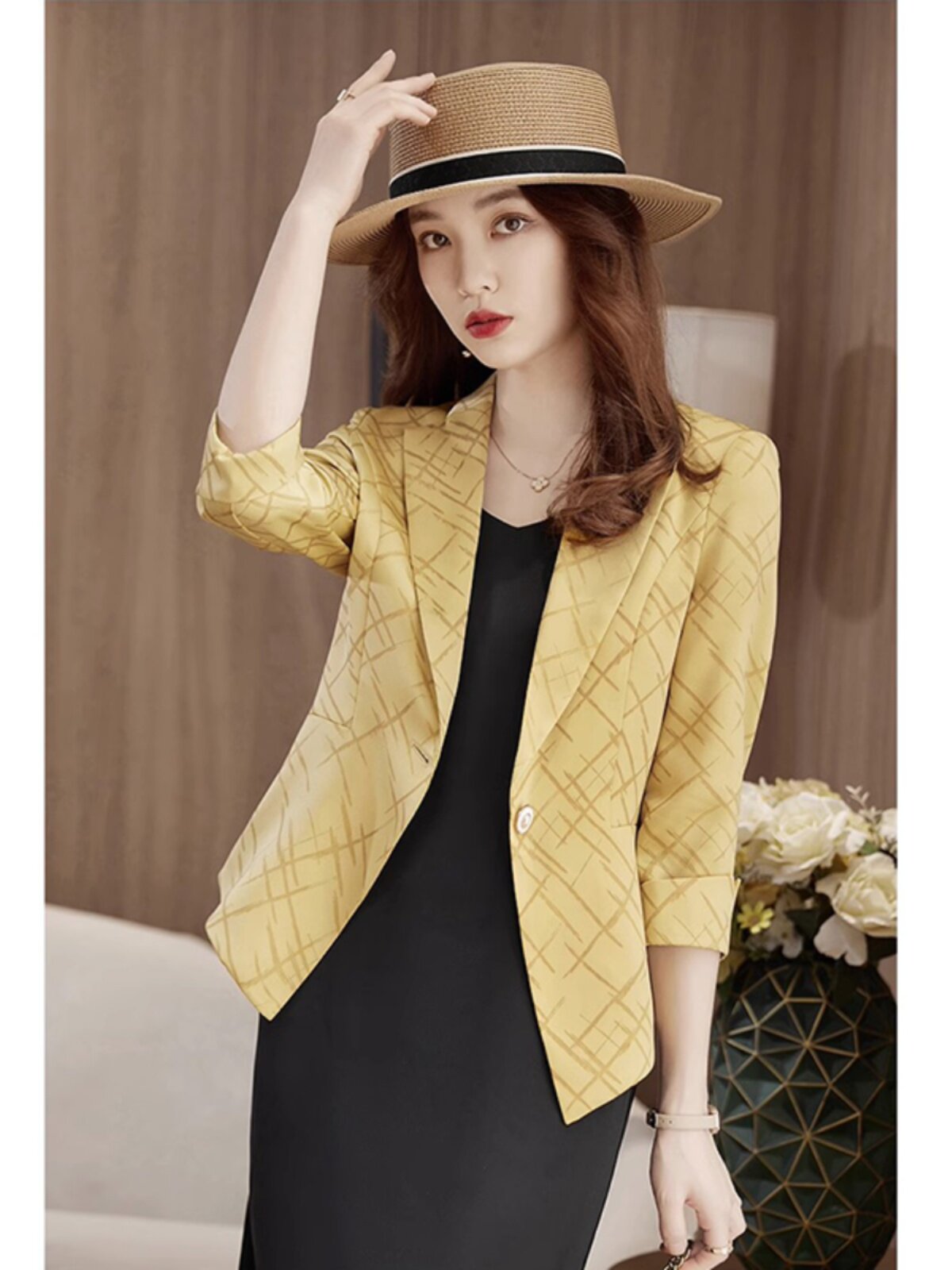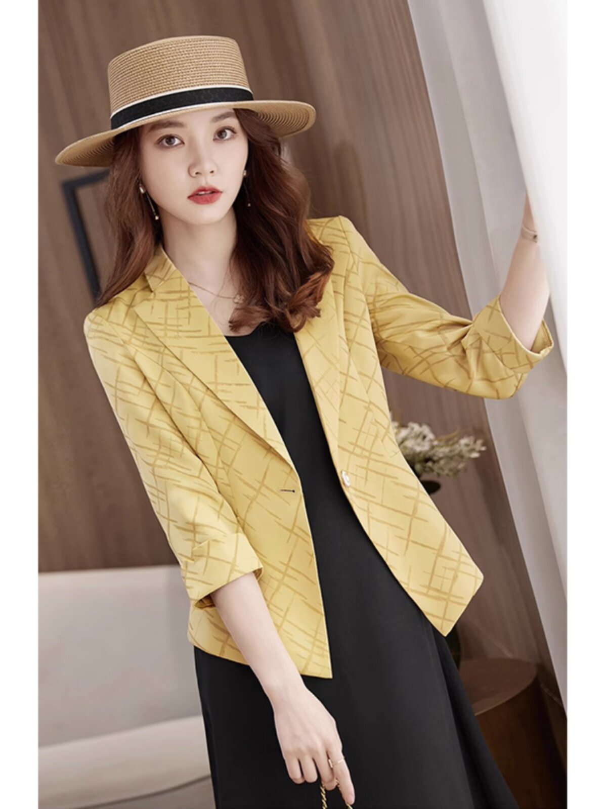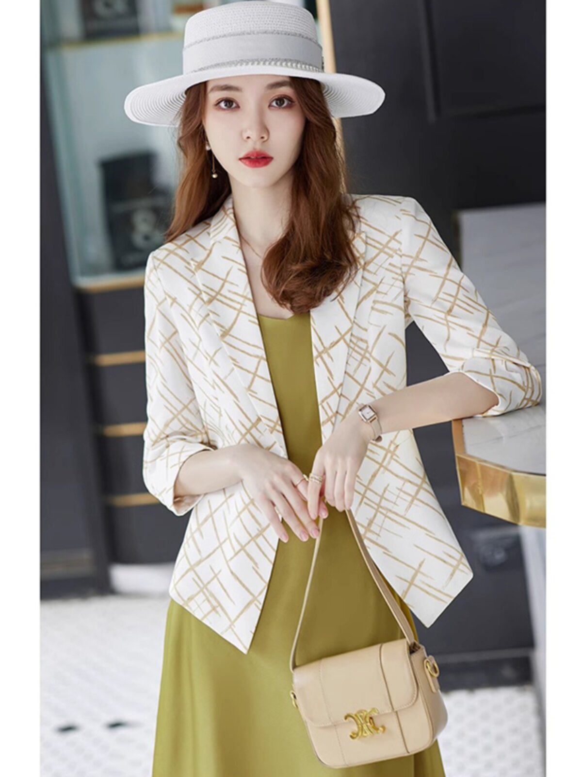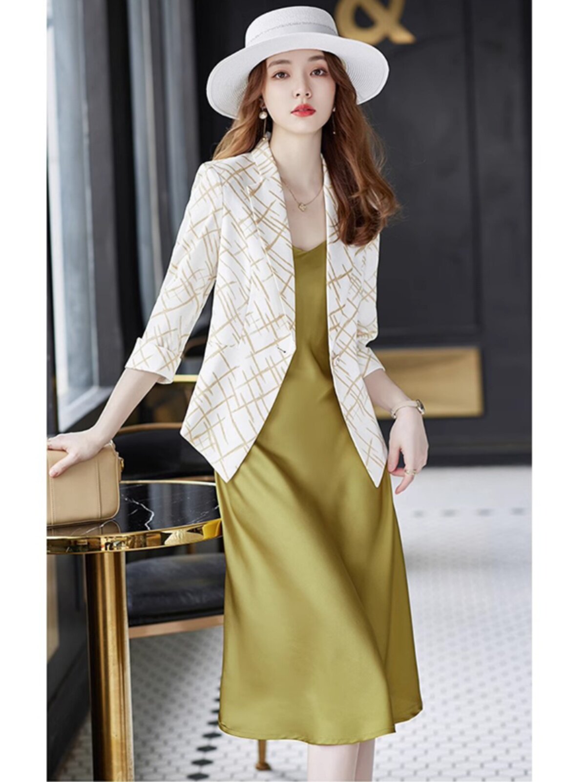 休闲薄款西装外套女秋季2023新款七分袖西服吊带裙小个子职业套装