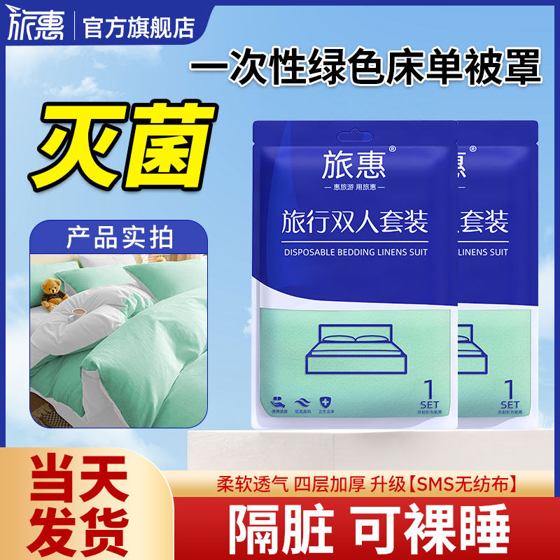 天猫旅惠旗舰店,一次性床单被罩枕套被套出差旅行加厚隔脏酒店床上用品双人四件套,便携 隔脏 灭菌 更卫生
