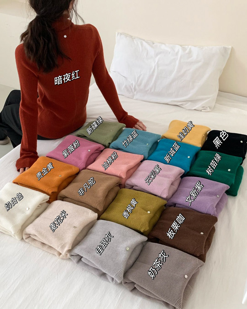 淘宝欧品风尚欧洲站欧韩货中高端女装潮店,贝壳扣高领细羊毛针织衫女欧洲站秋装2023新款欧货女装打底小衫潮