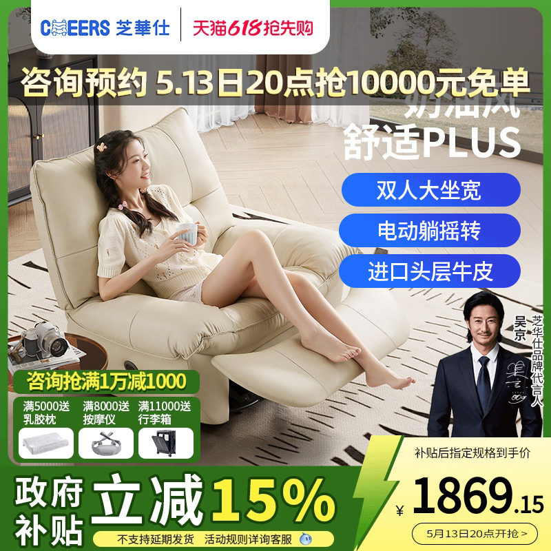 芝华仕头等舱电动功能真皮懒人单人沙发客厅奶油风智能椅30022