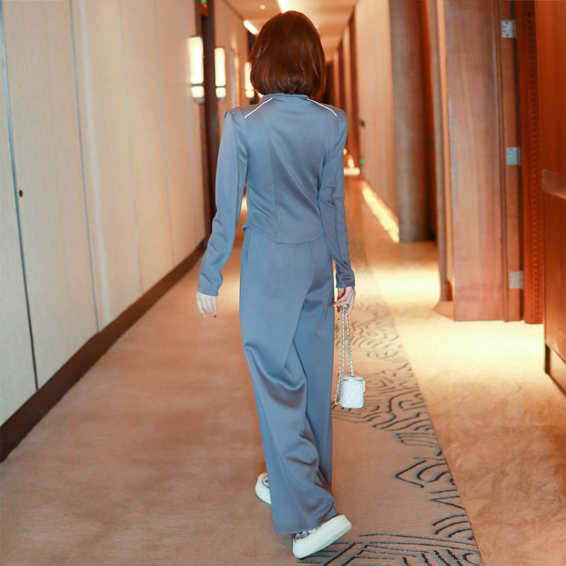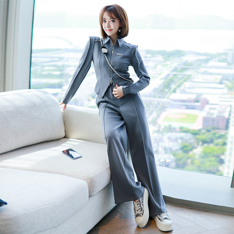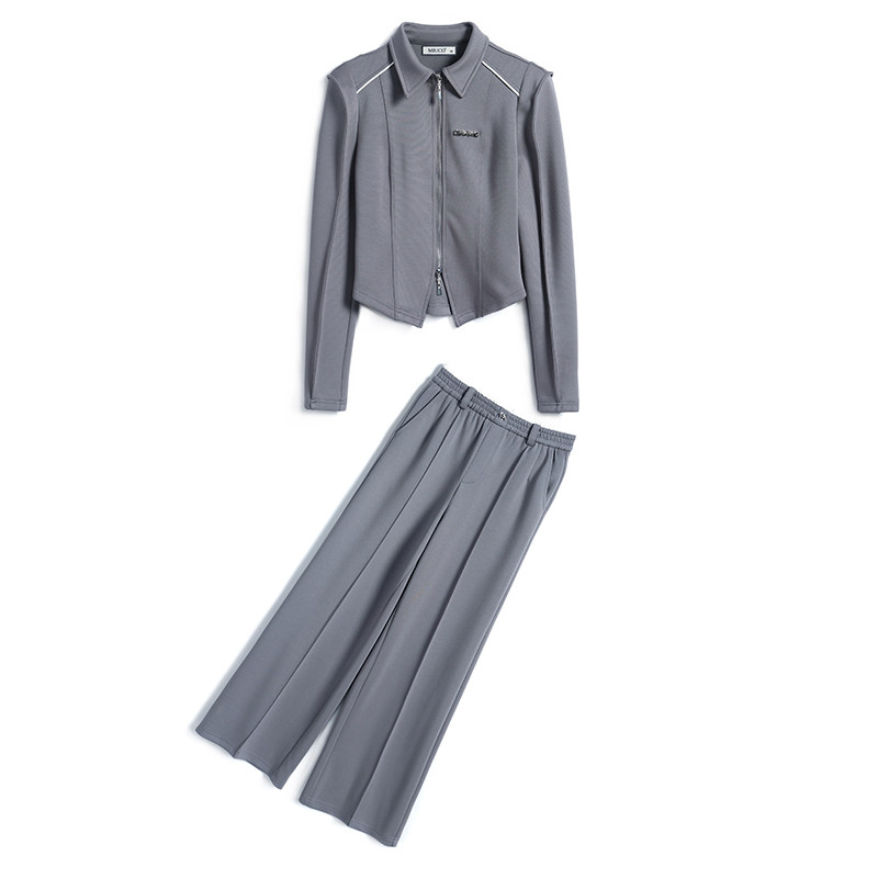 淘宝MIUCO专注高品质快时尚女装,MIUCO尖翻领拉链开襟收腰修身休闲卫衣+高腰宽松阔腿裤套装女2023