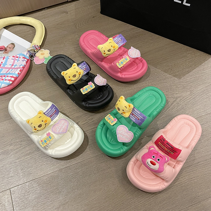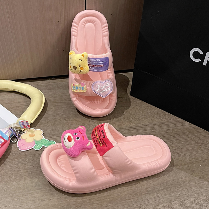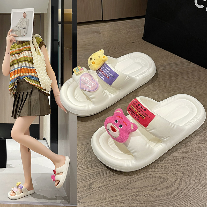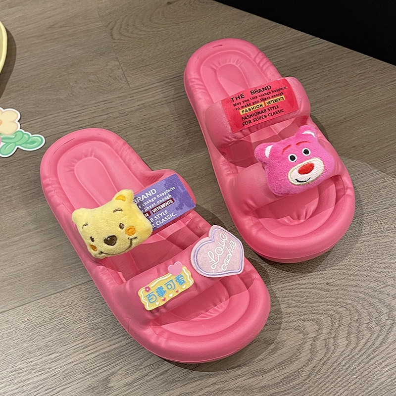时尚部落草莓熊拖鞋女外穿2024年春夏季新款踩屎感网红超火一字拖