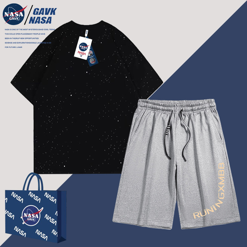NASA GAVK2024套装纯棉T恤夏季新品男女同款五分印花情侣潮牌短裤