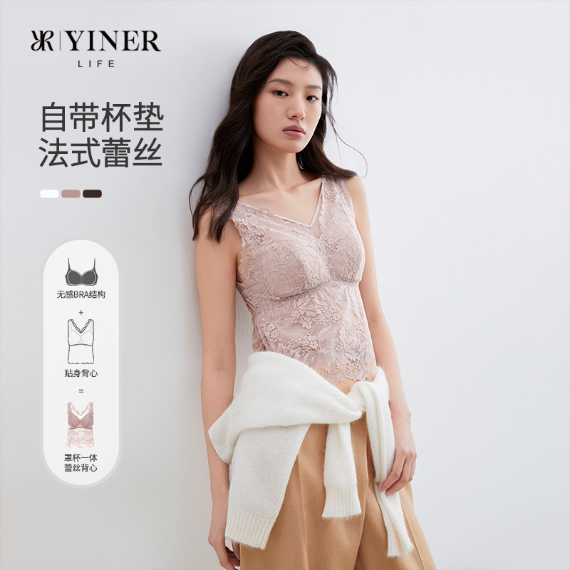 天猫yinerlife旗舰店,音儿内衣吊带背心女内搭免穿文胸,精致花型蕾丝,蜂窝状三明治海绵杯