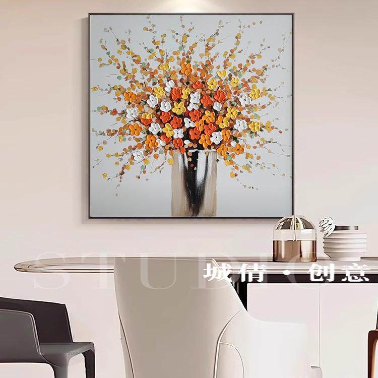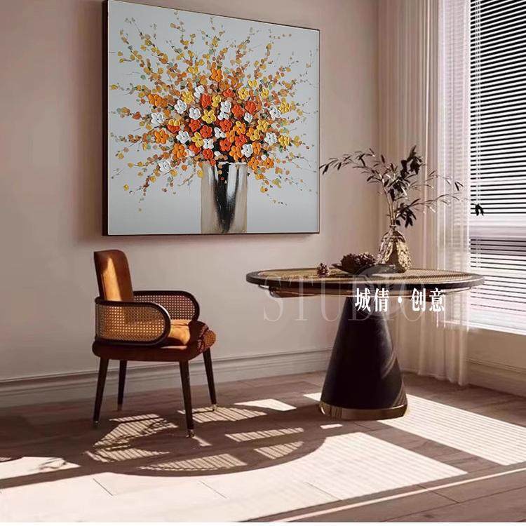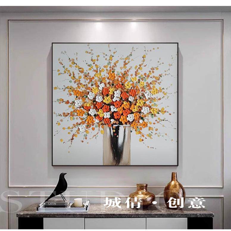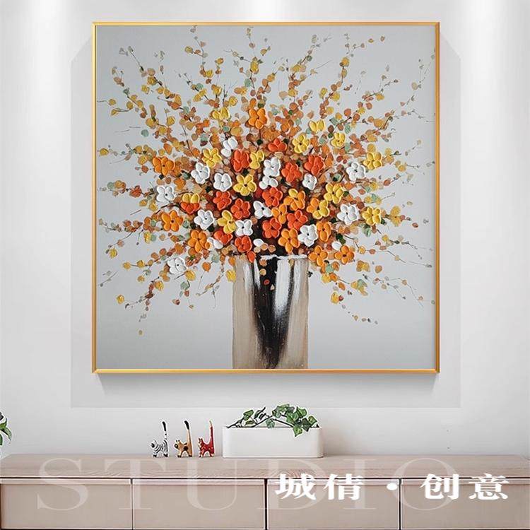 淘宝城倩创艺(大芬油画村),纯手绘油画卧室轻奢现代简约装饰画肌理厚油刀花代抽象客厅挂画