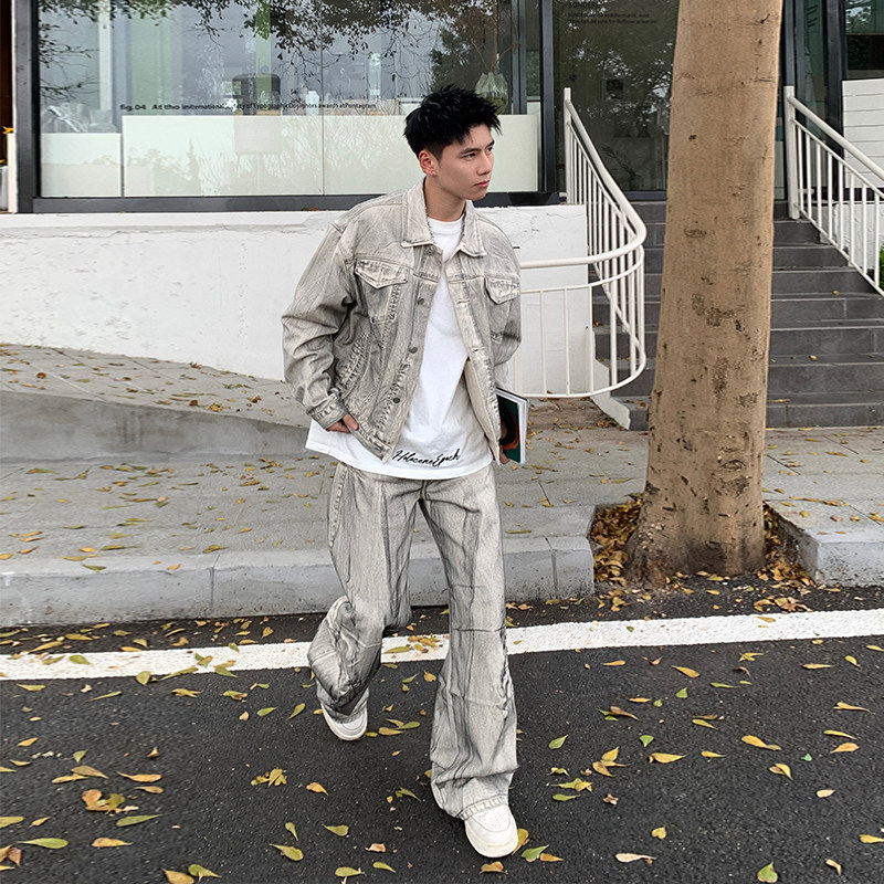 Holocene美式潮牌春款夹克小众高级感做旧脏白废土感搭配牛仔套装