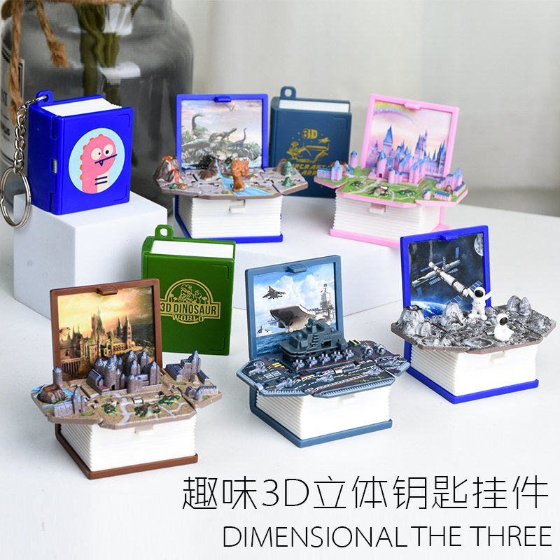3d魔法书场景书本解压立体书钥匙扣航母城堡书包挂件太空挂饰男孩