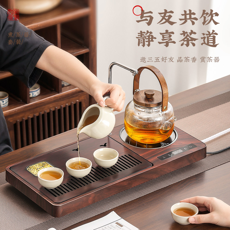 宝选茶具套装2024新款汝窑电陶炉煮茶壶烧水壶一体茶盘茶台一整套