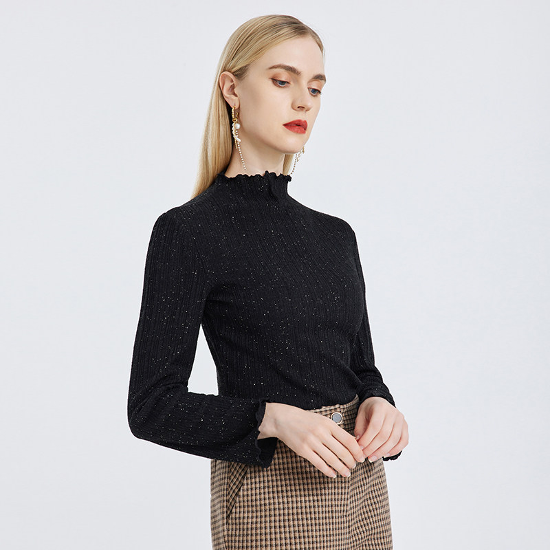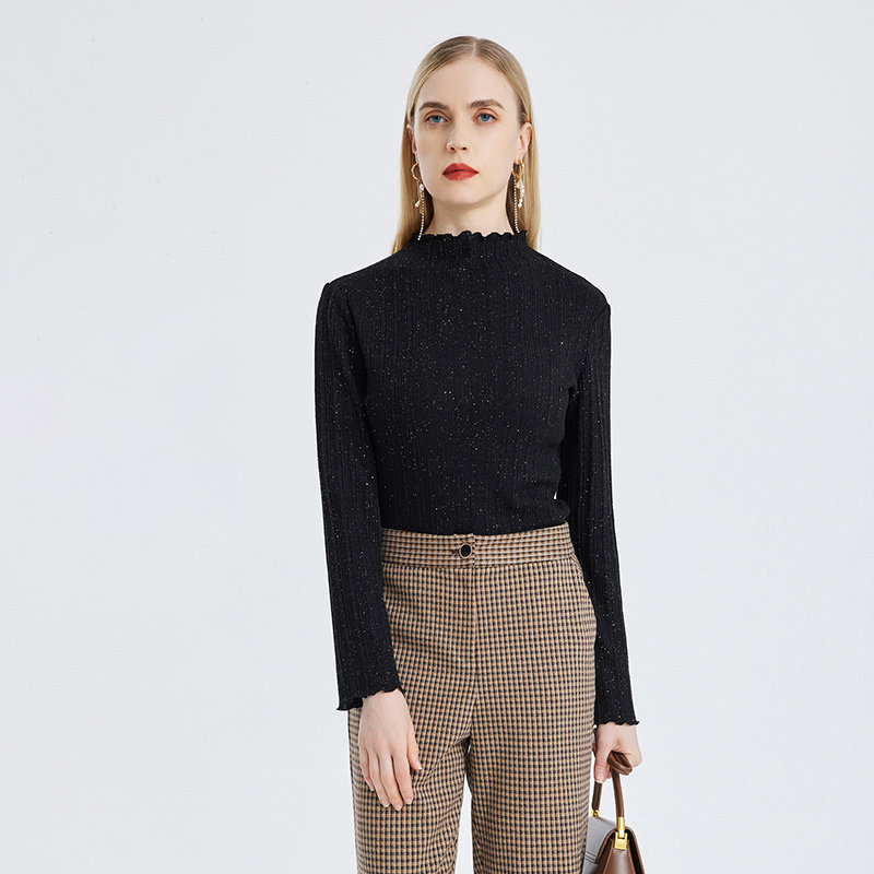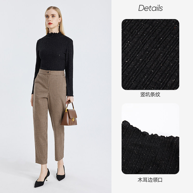 天猫马天奴官方旗舰店,木耳边针织上衣马天奴套头高领,吊牌价1480 木耳边设计 通勤百搭款