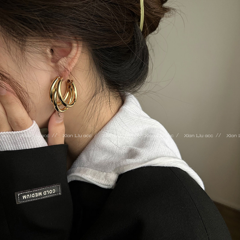 淘宝先流饰品,独特C形金属耳圈2024新款爆款复古气质耳环小众设计感高级耳饰女