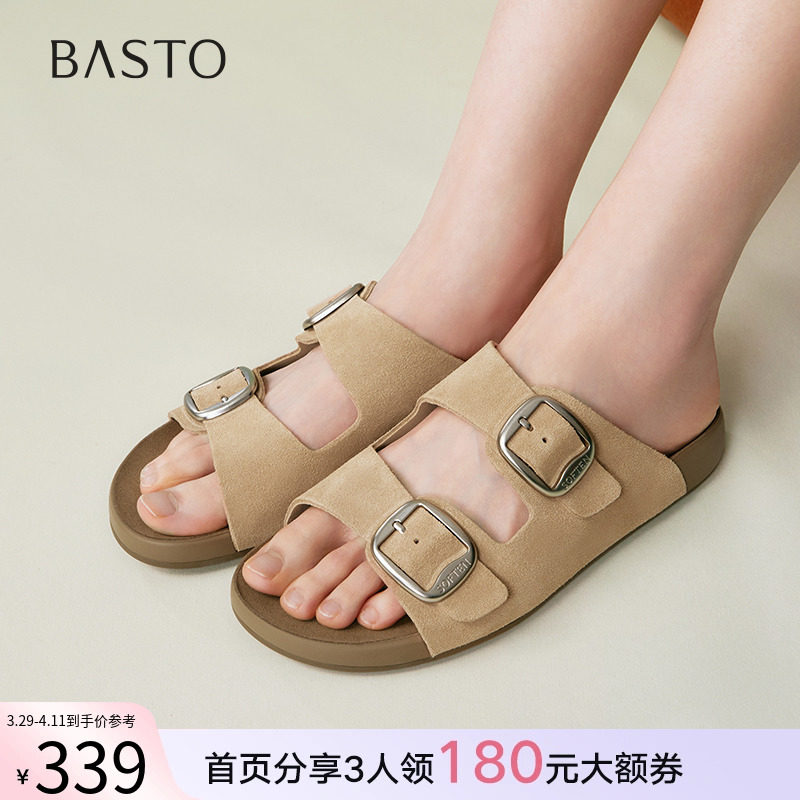 天猫百思图官方旗舰店,百思图25夏商场新款休闲懒人勃肯鞋豹纹鞋平底外穿女拖鞋A6411BT5,时尚潮流简约舒适