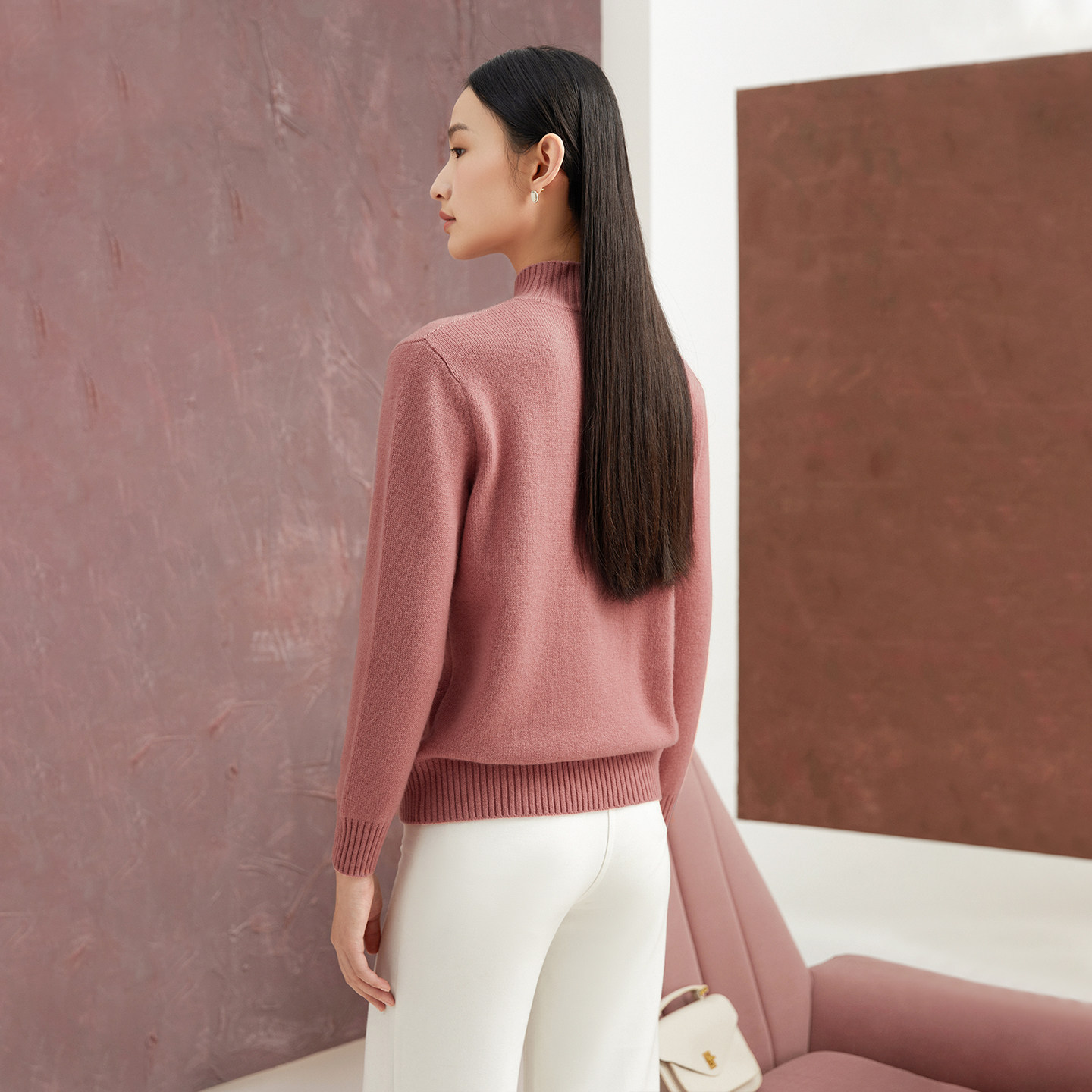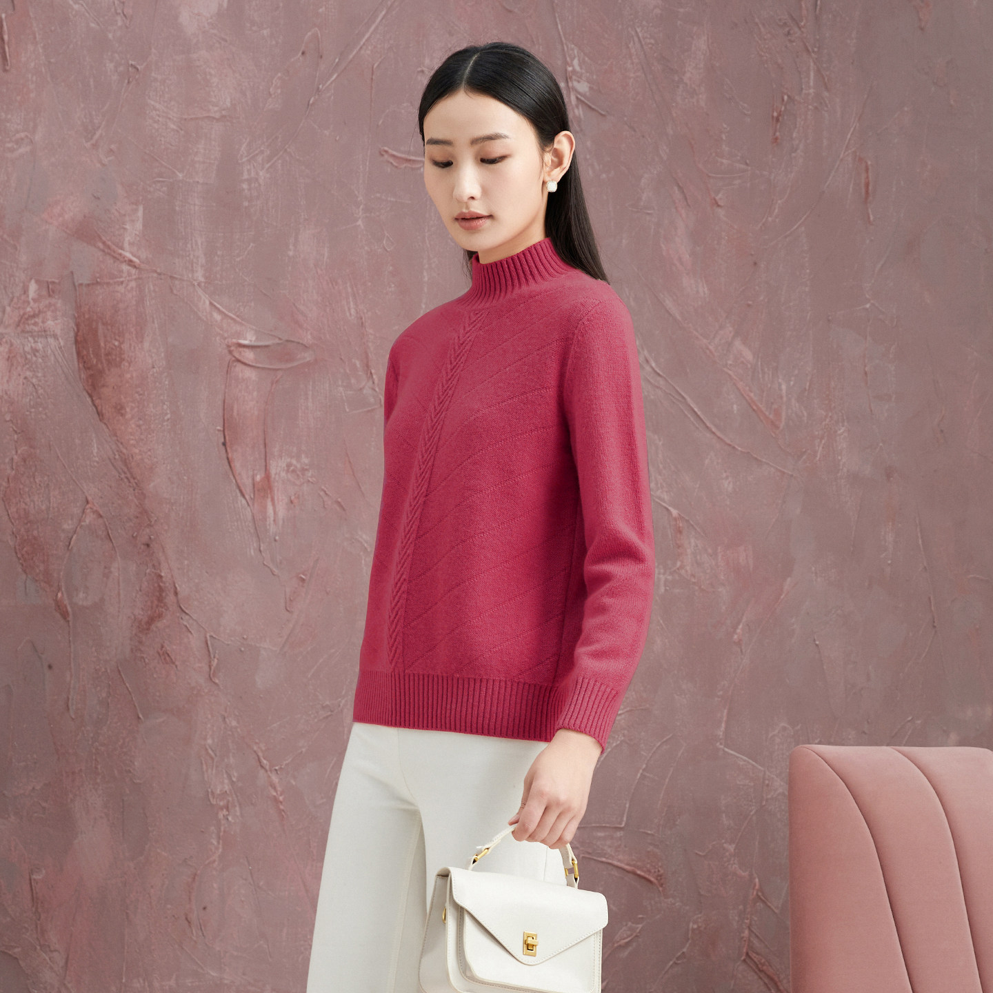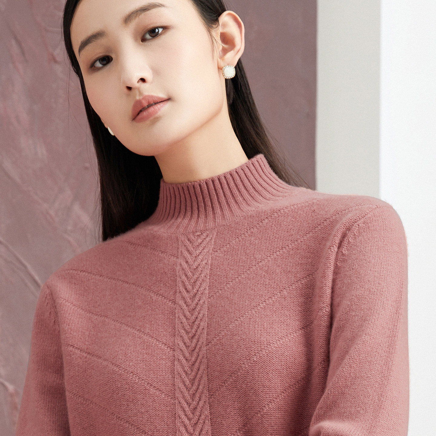 鹿王100%纯羊绒衫女半高领变化组织长袖百搭保暖套衫春秋冬新款