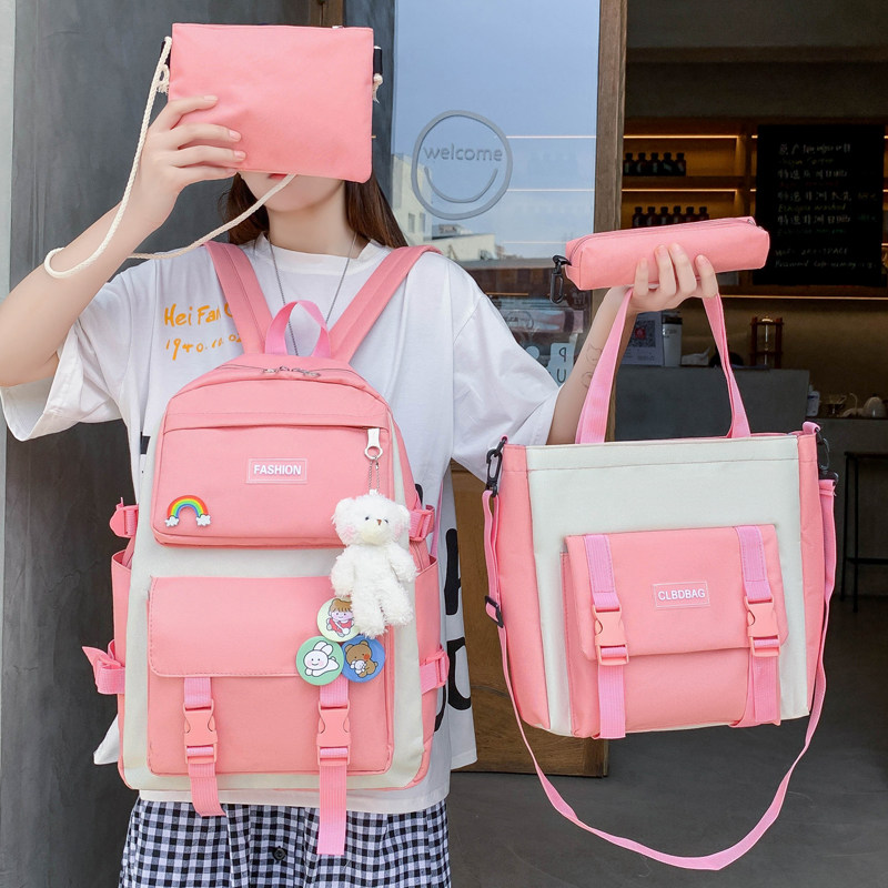 四件套书包女韩版原宿ulzzang高中初中学生双肩包小学三到五年级