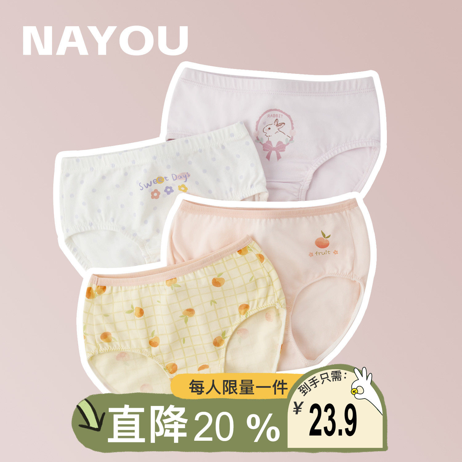 纳柚纯棉女童内裤无骨三角内裤