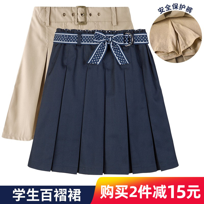 儿童卡其色百褶裙半身裙女童藏青色女孩夏季英伦风小学生校服裙子