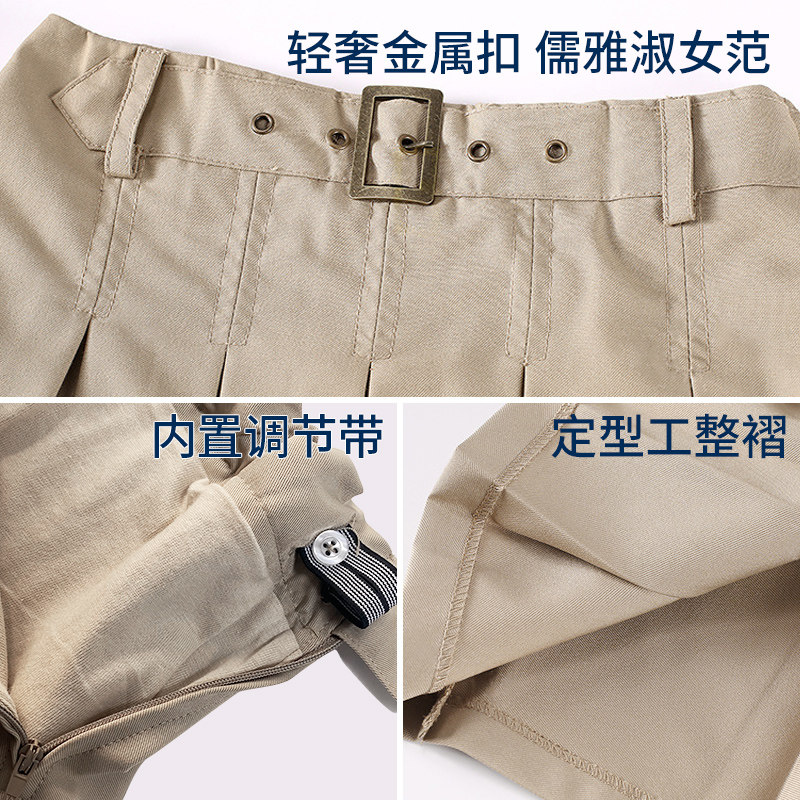 淘宝同和里学生校服,卡其色百褶裙女童夏季校服裙子