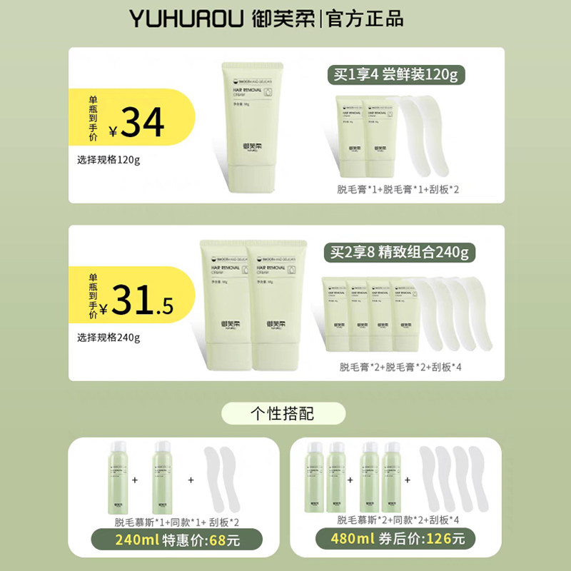 淘宝绿泽美妆专柜,御芙柔脱毛膏腋下男女温和